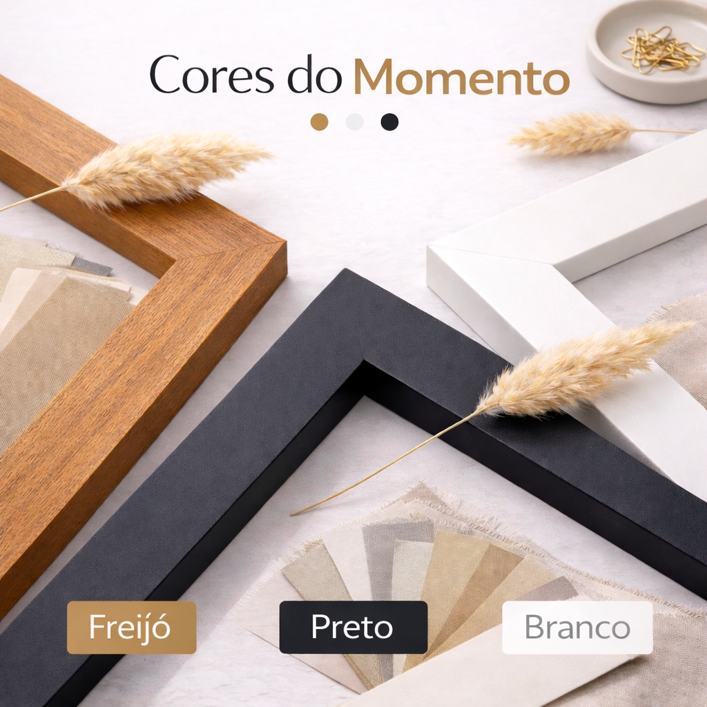 Kit 3 Quadros Decorativos Folhagem Dourada Gold Moldura 40X60 cm Sala Grande Moderno