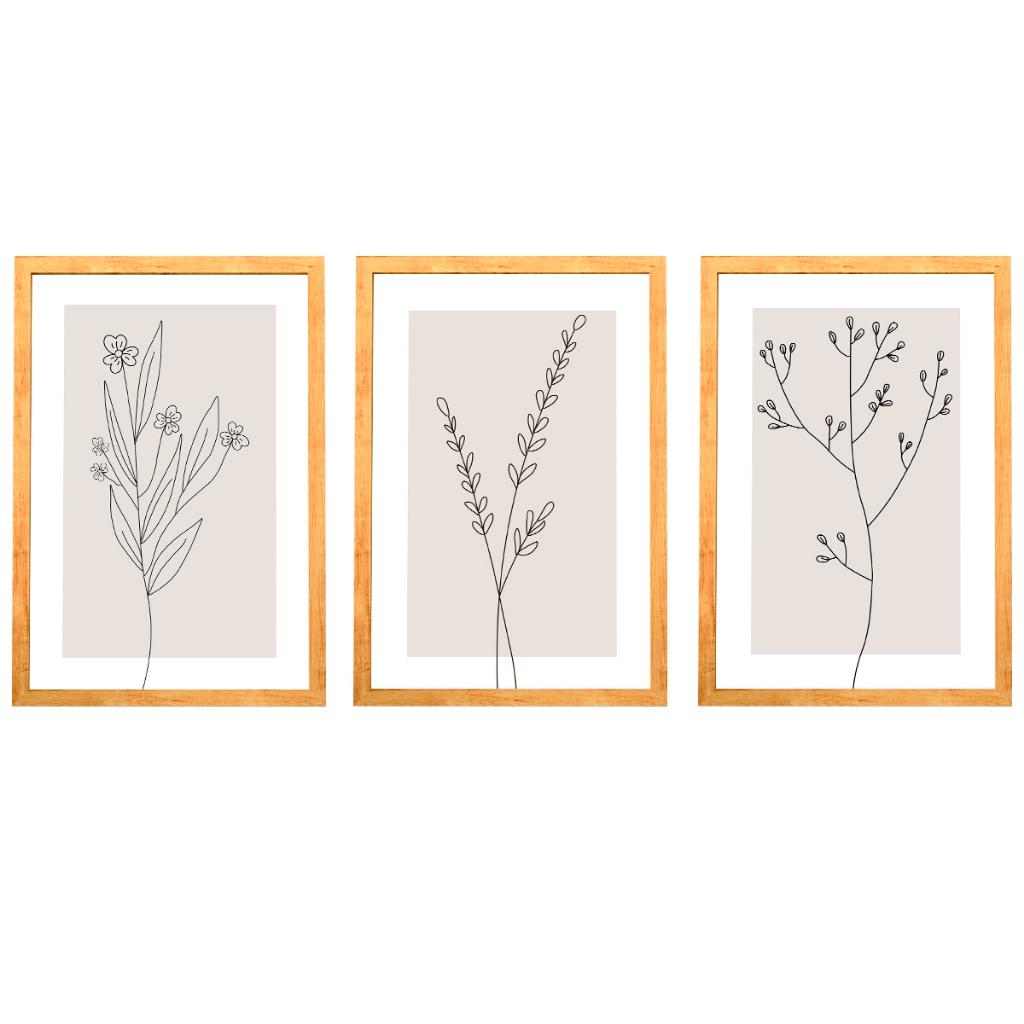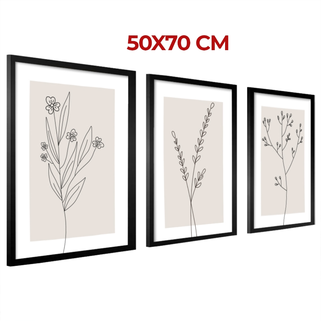 Conjunto Quadros Decorativos Moldura 50x70 cm Sala Quarto Minimalista Moderno Sala