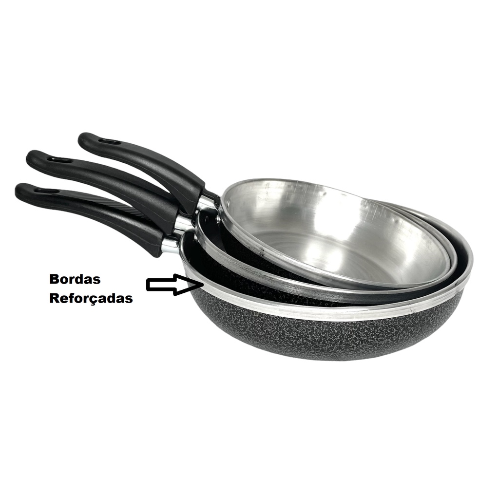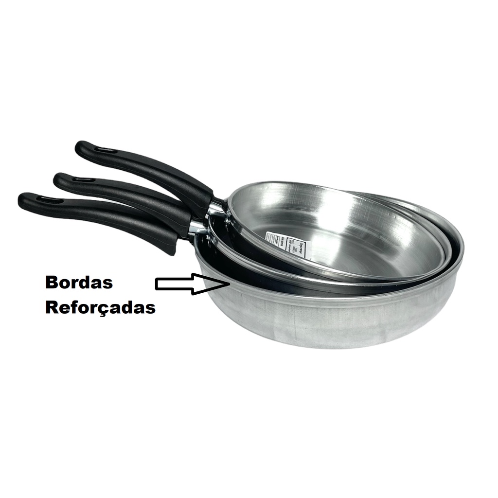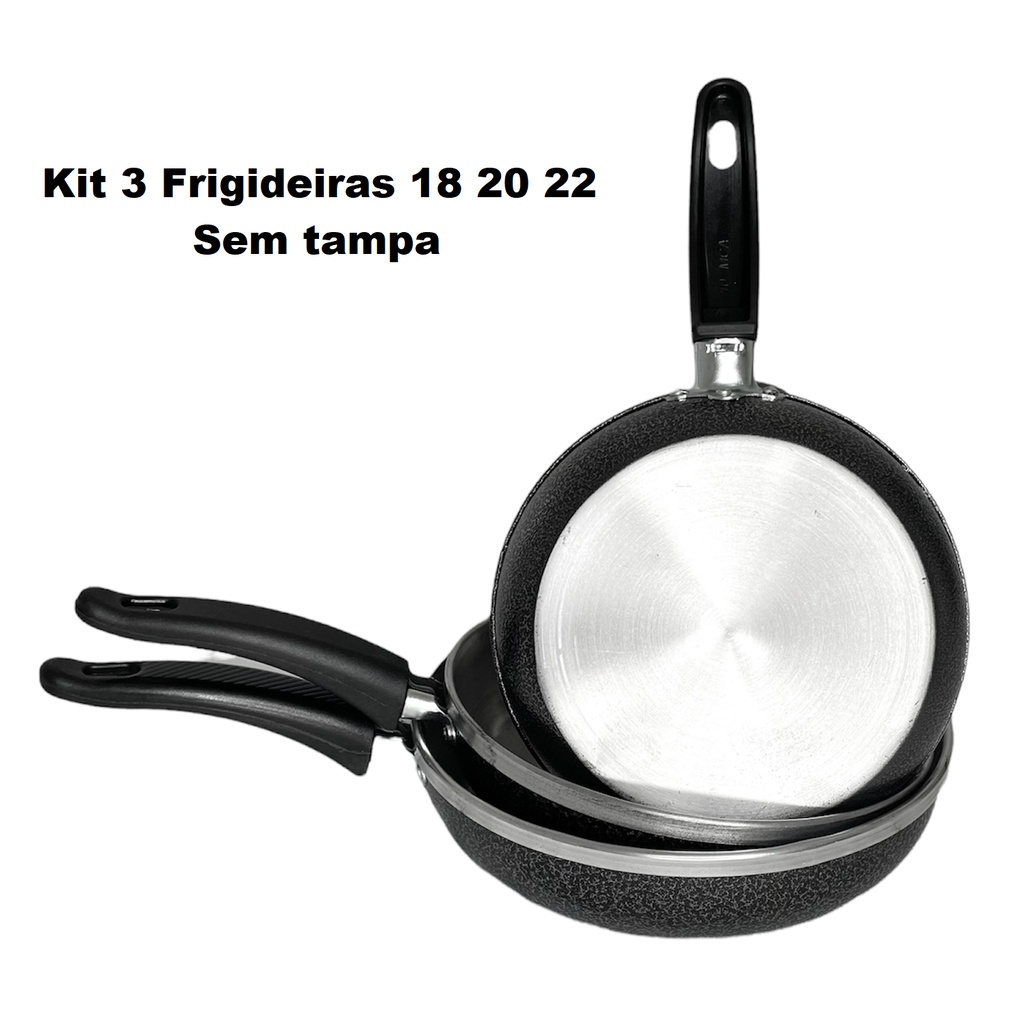 Conjunto Kit De Frigideiras Sem Tampa 18 20 22 Em Alumínio Preta ou Polida Oferta
