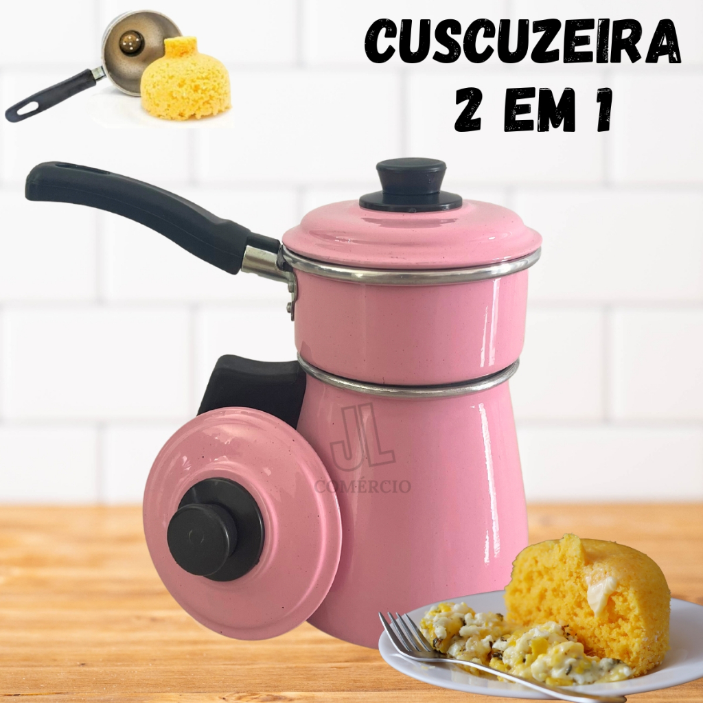 Cuscuzeiro Individual 2 em 1 Porção Única Cozi Vapore Caneco Leiteira 1L Com 2 Tampas