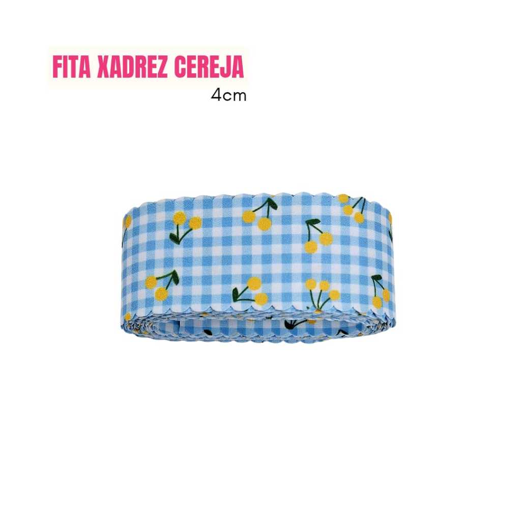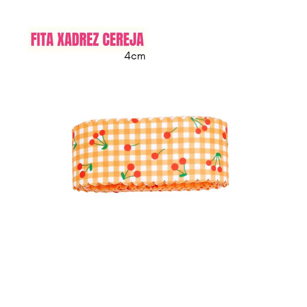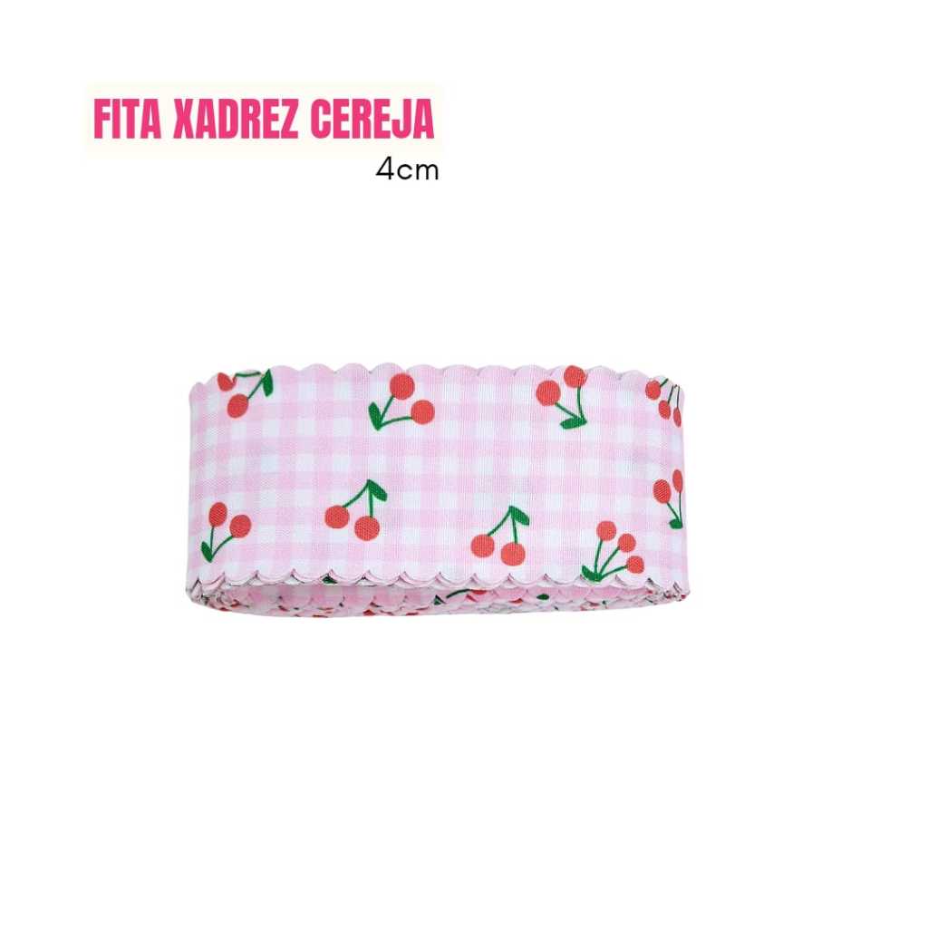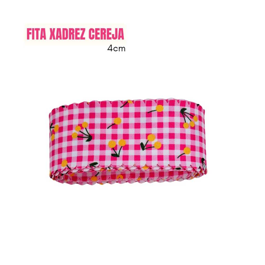 Fita Xadrez Cereja - 4cm - para Laços e Tiaras
