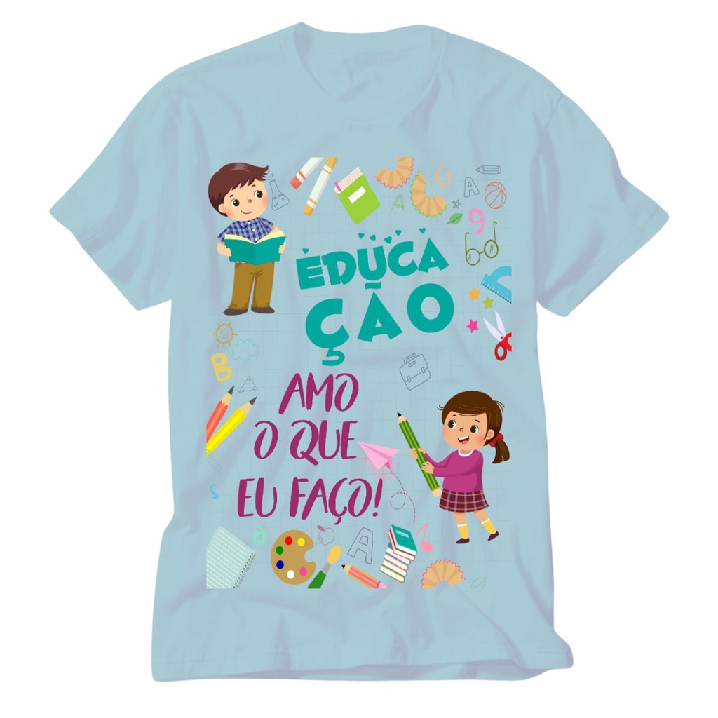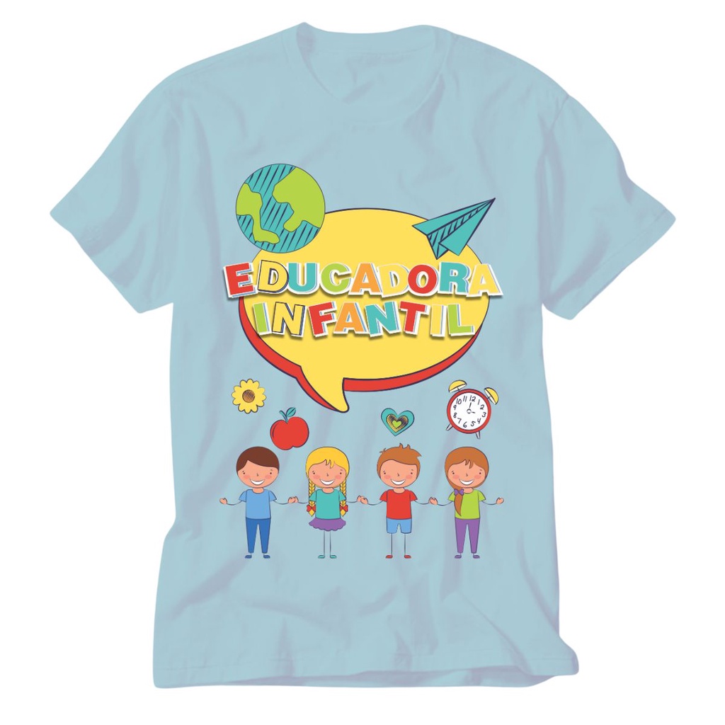 Camiseta Educacao Infantil azul Professora Pedagogia Educar