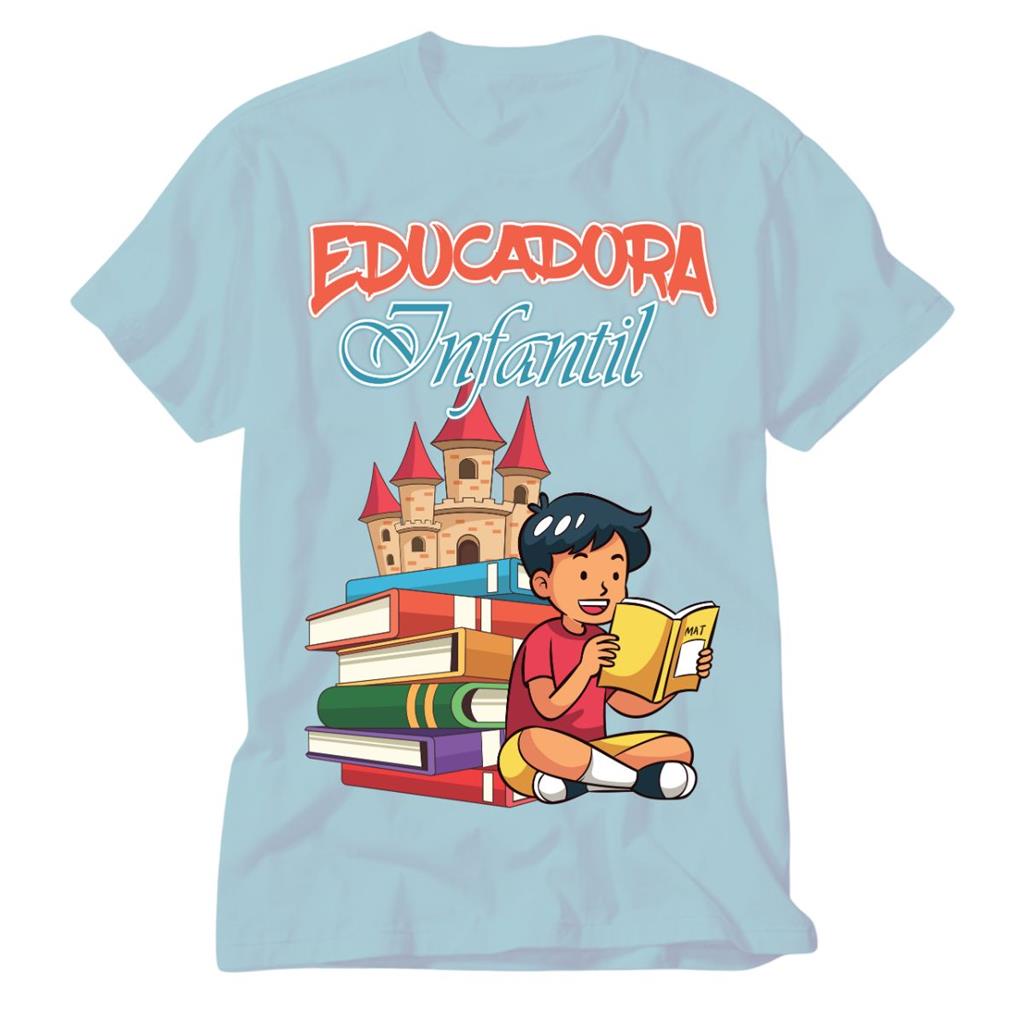 Camiseta Educacao Infantil azul Professora Pedagogia