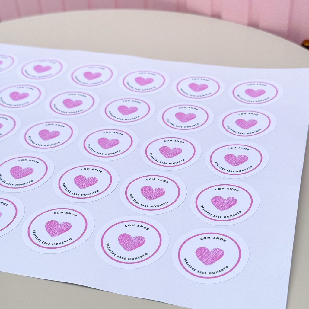 35Un Cartela de adesivo Com Amor- Adesivo Para Embalagem