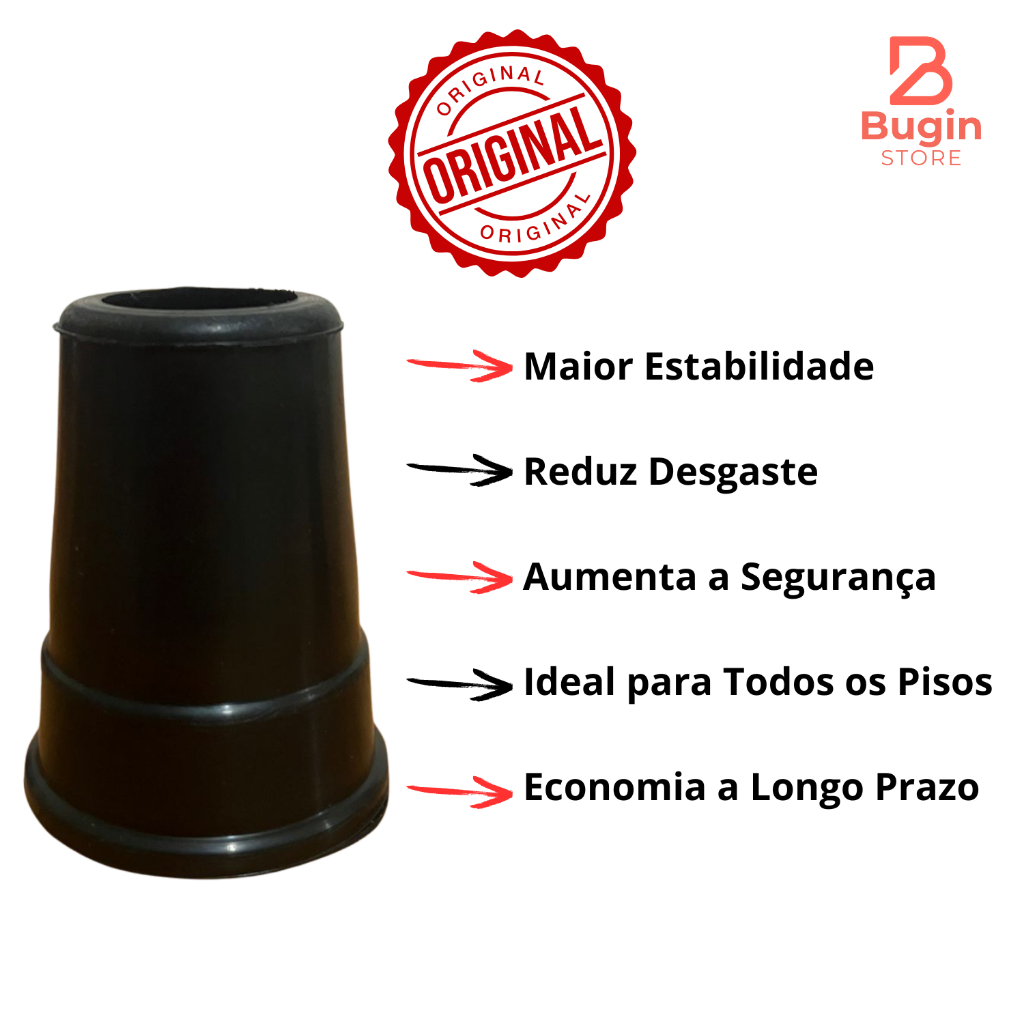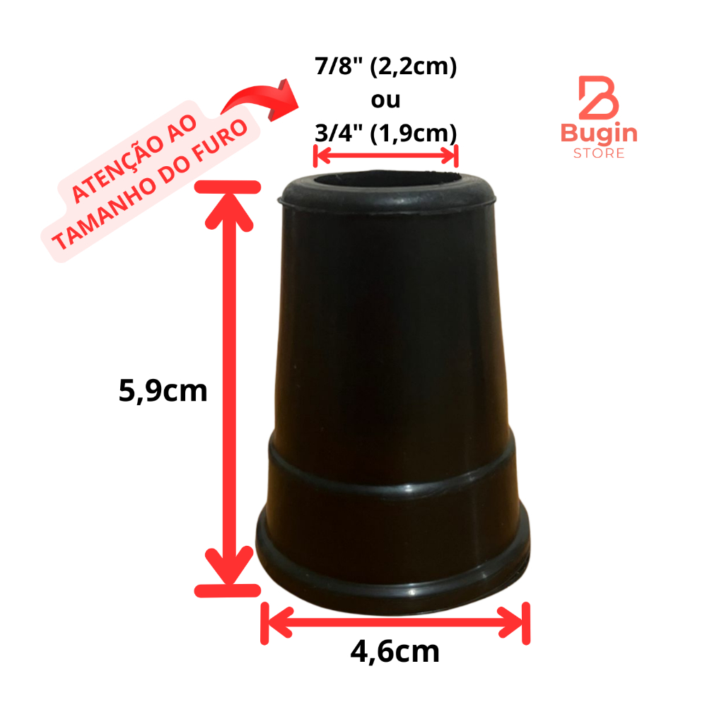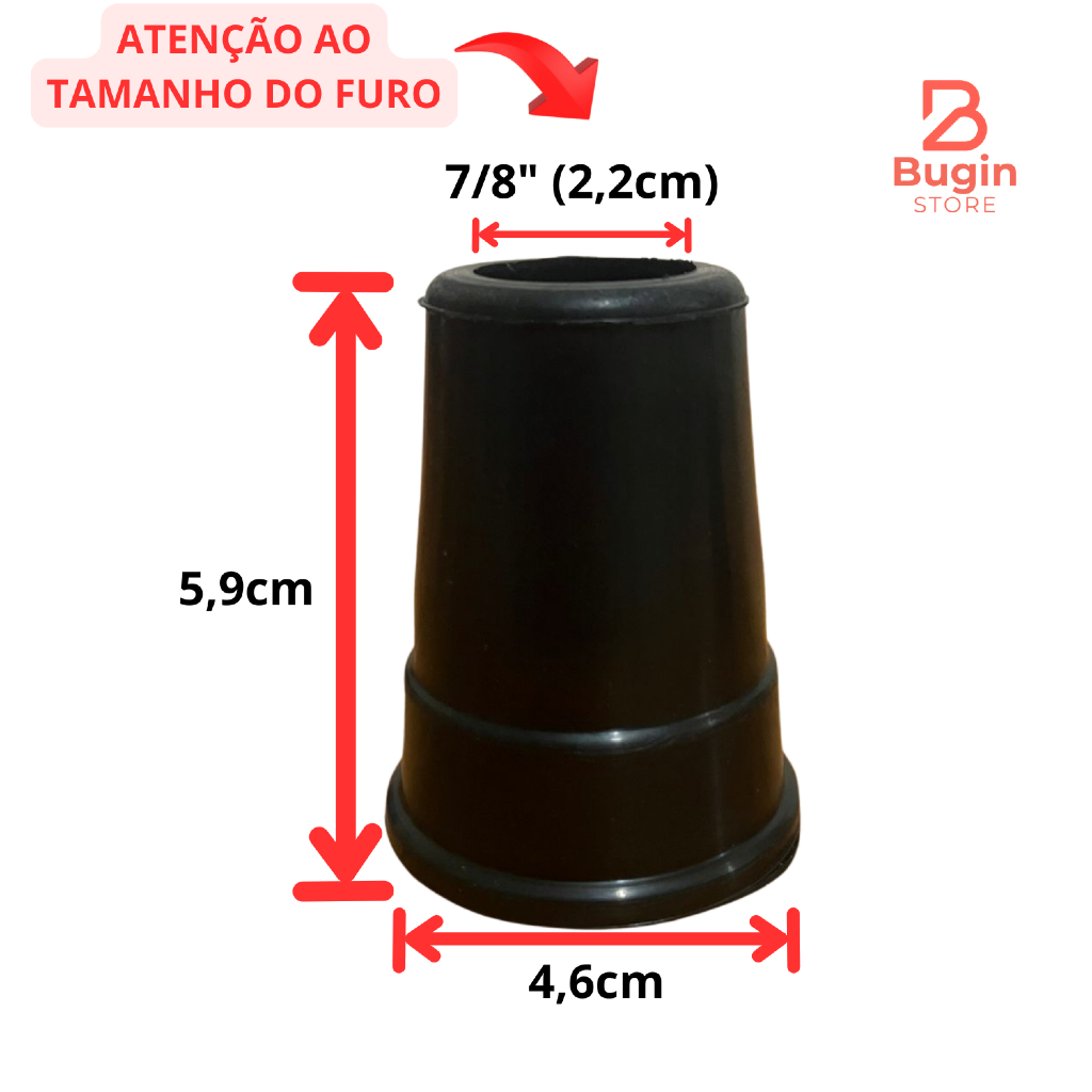 Kit 2 Ponteira Pé De Borracha 7/8" (2,2cm) ou 3/4" (1,9cm) Muleta Bengala Andador e Auxiliar
