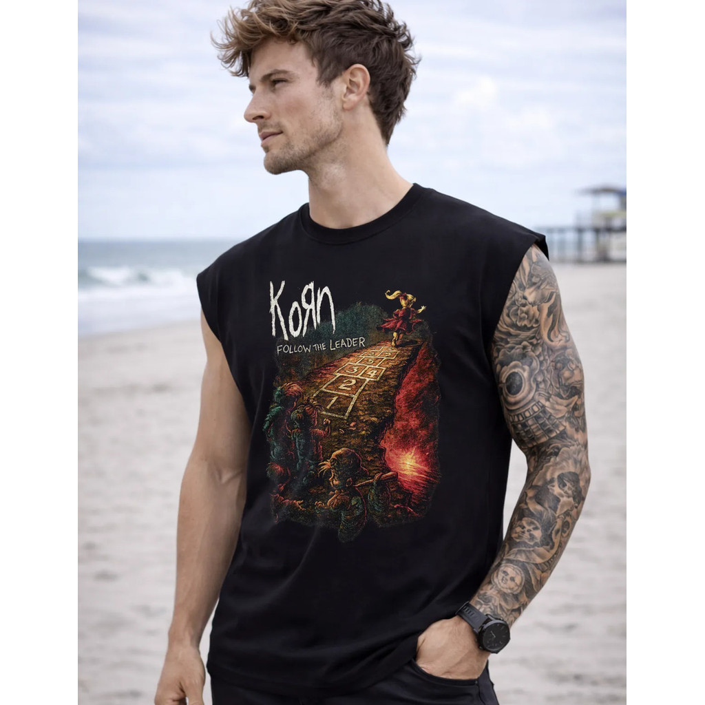 Camiseta Regata Oversized Rock Korn Dark Cavada