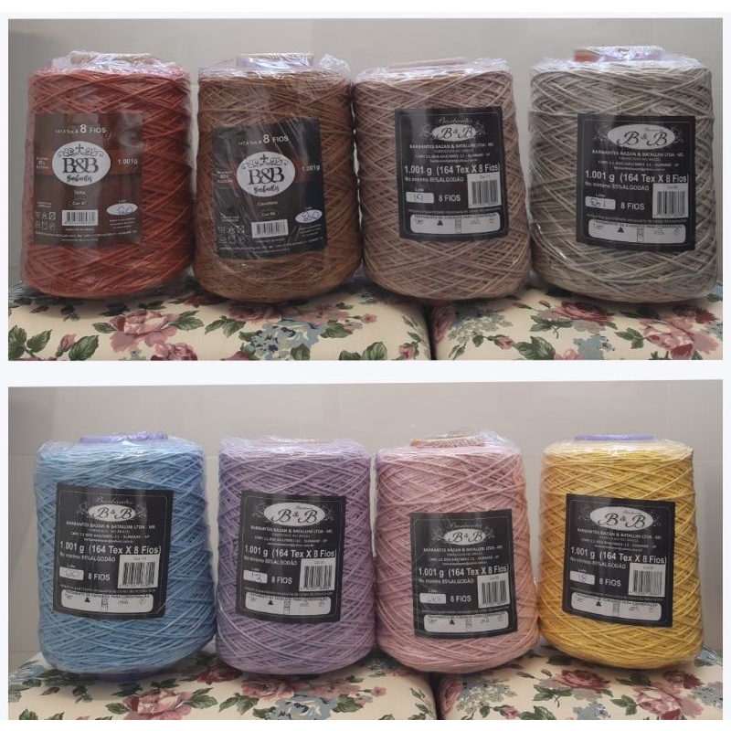 Barbante B&B 8 Fios kit com 4 cones de 1kg- Cores firmes. (IMPORTANTE escolha suas cores no chat no momento da compra)