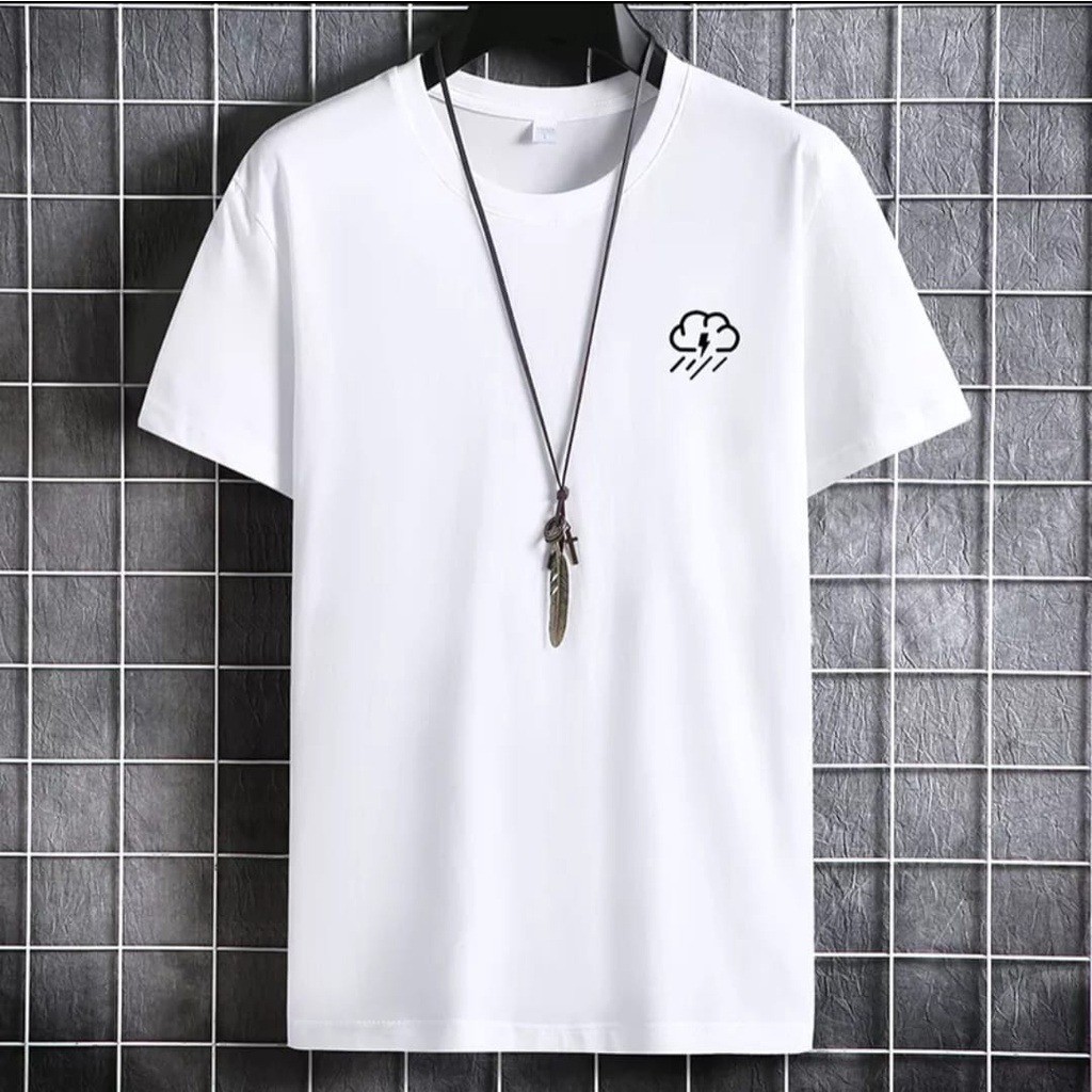 Camiseta Emoji Nuvem Chuva Minimalista Desenho Lateral Camisa Unissex