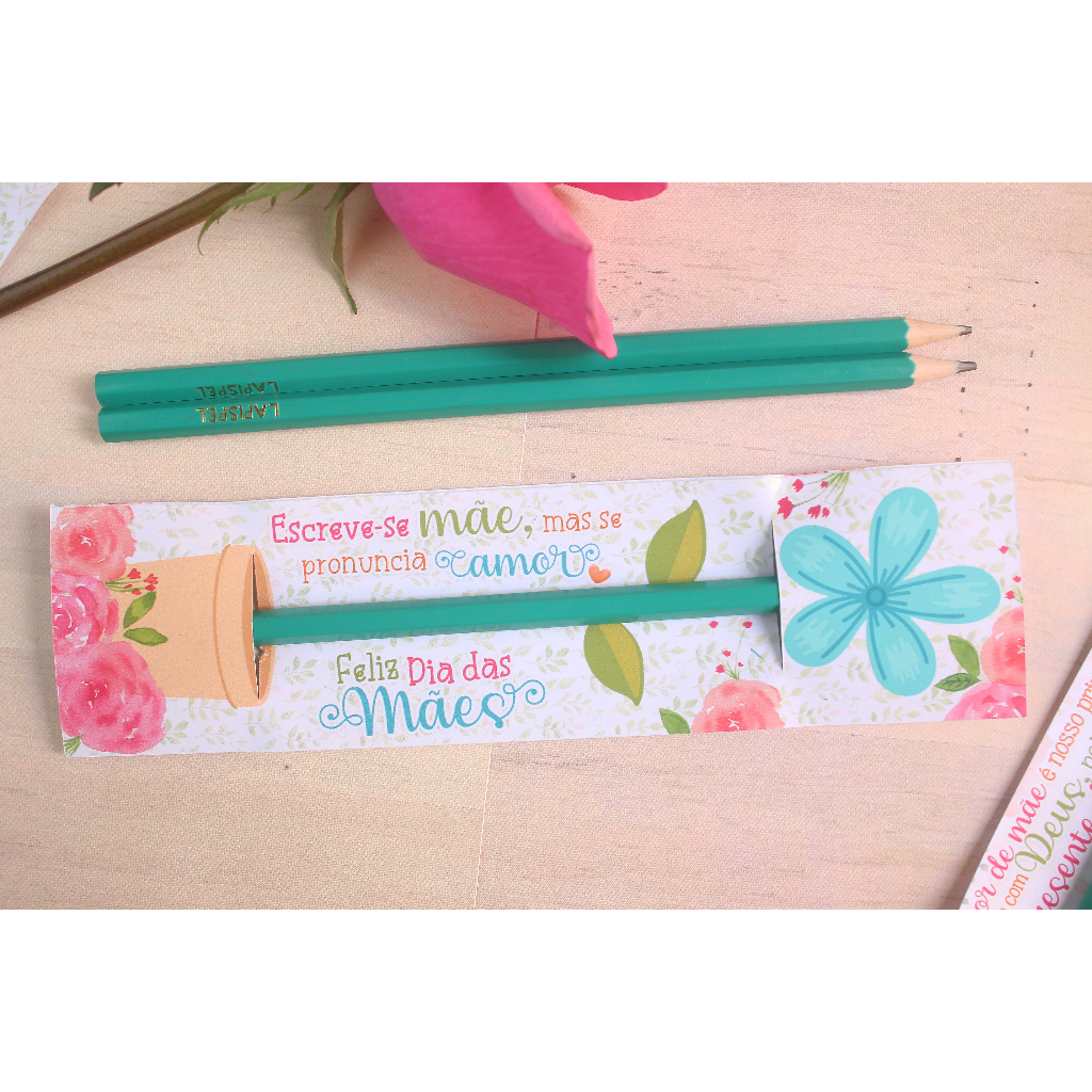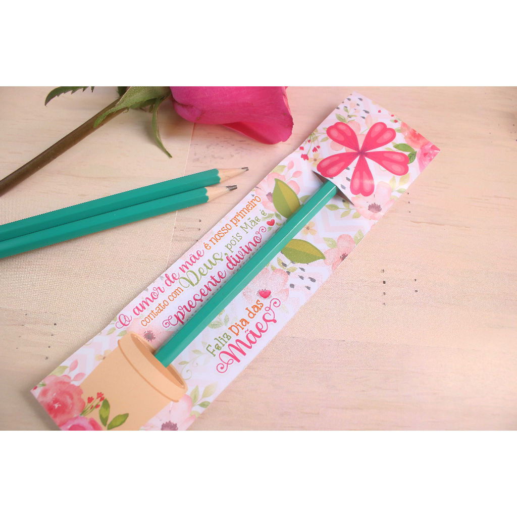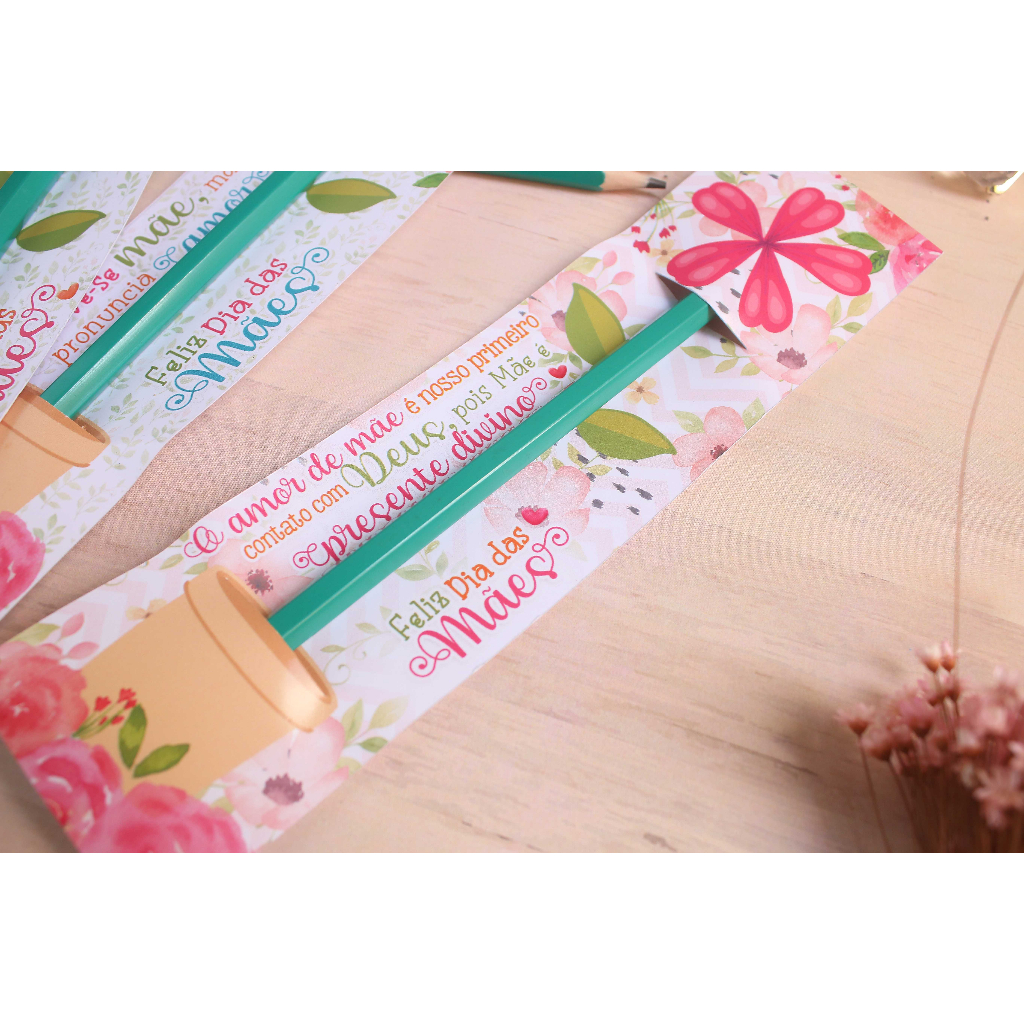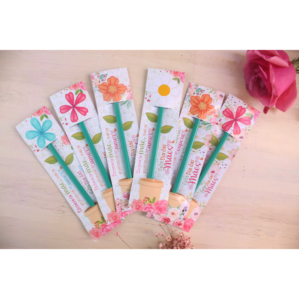 Combo 50 Cards Personalizados + 50 Lápis Dia das Mães Flores