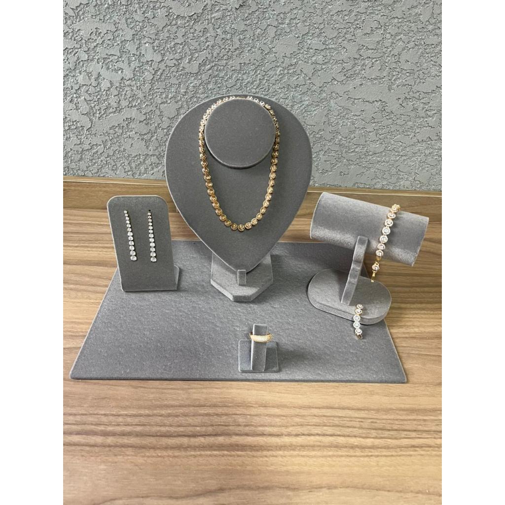 Display Expositor para Joias e Bijuterias Kit Vitrine 5 Peças - Veludo Cinza Premium