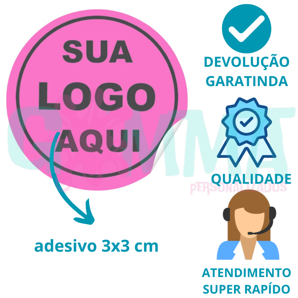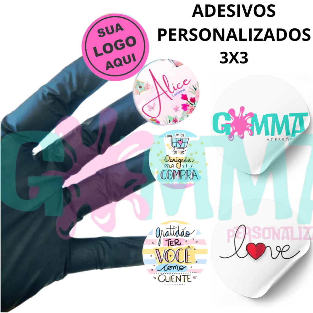 Etiquetas Adesivas Personalizada 1000 UNIDADES, 750, 500, 300 E 50 Premium 3x3 cm PROMOÇÃO