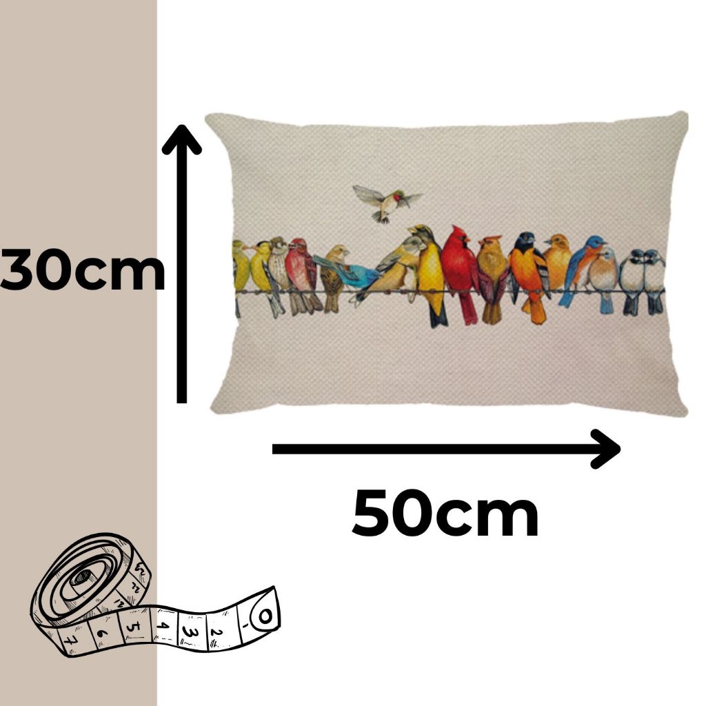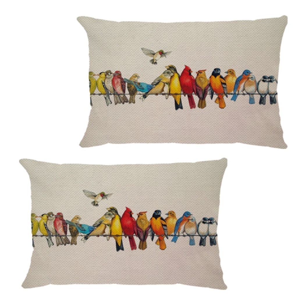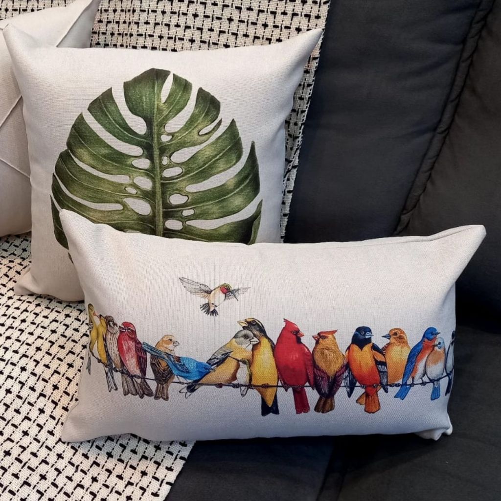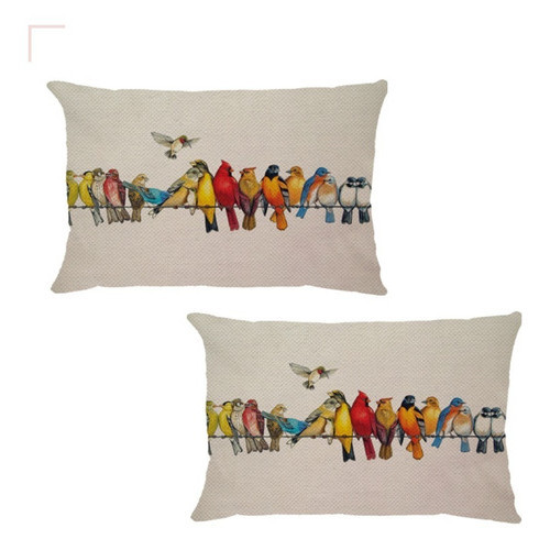 Kit 2 Capas Almofadas Retangular Linho Passarinhos Coloridos no Fio Decoração de sofá cama 30x50