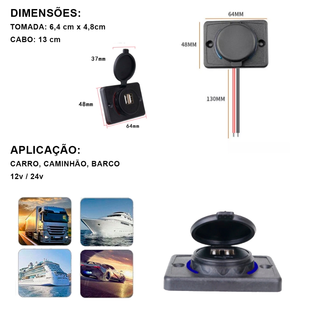 Tomada Carregador Usb Van Caminhão Barco 12v 24v 3.1A VEICULAR 2 ENTRADAS