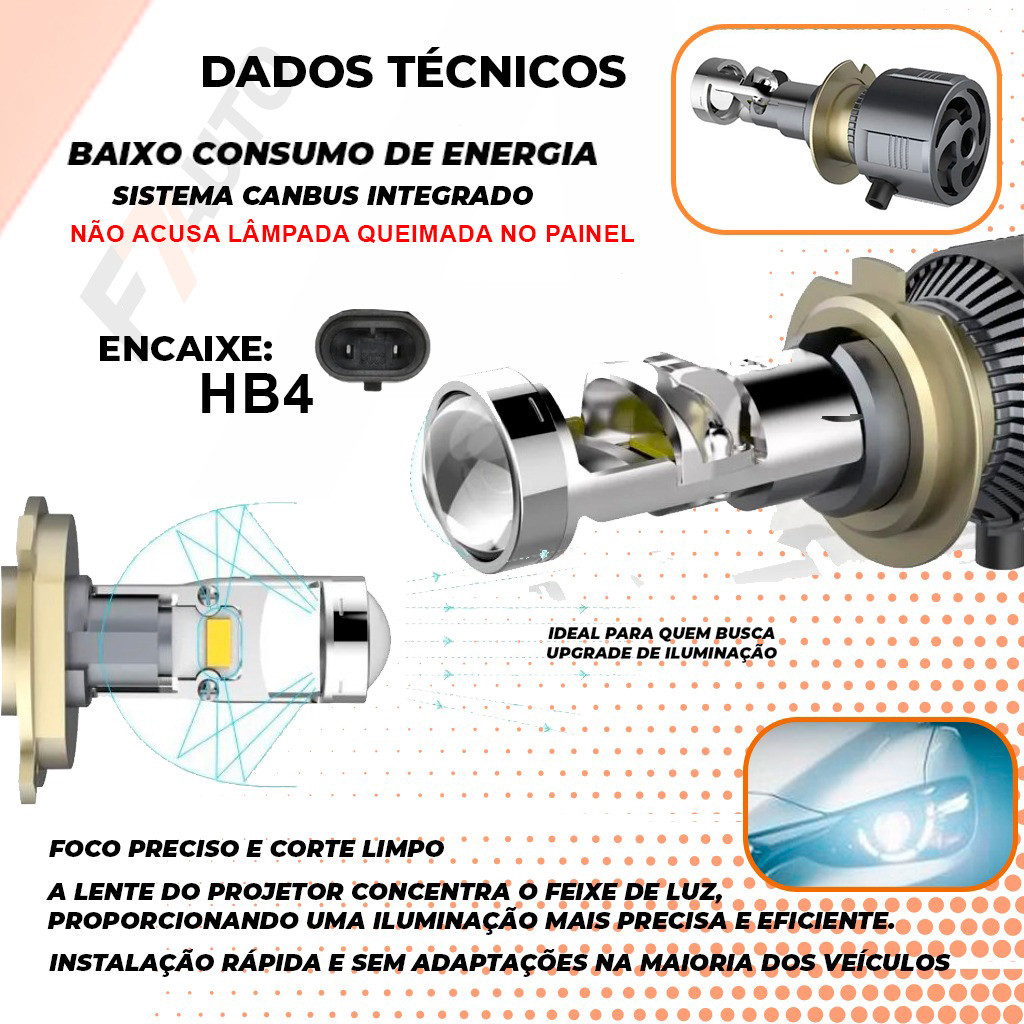 KIT led MINI Projetor Lâmpada HB4 Farol BAIXO NEBLINA MILHA 72w 12v regulagem lente projetora ANTI OFUSCAMENTO