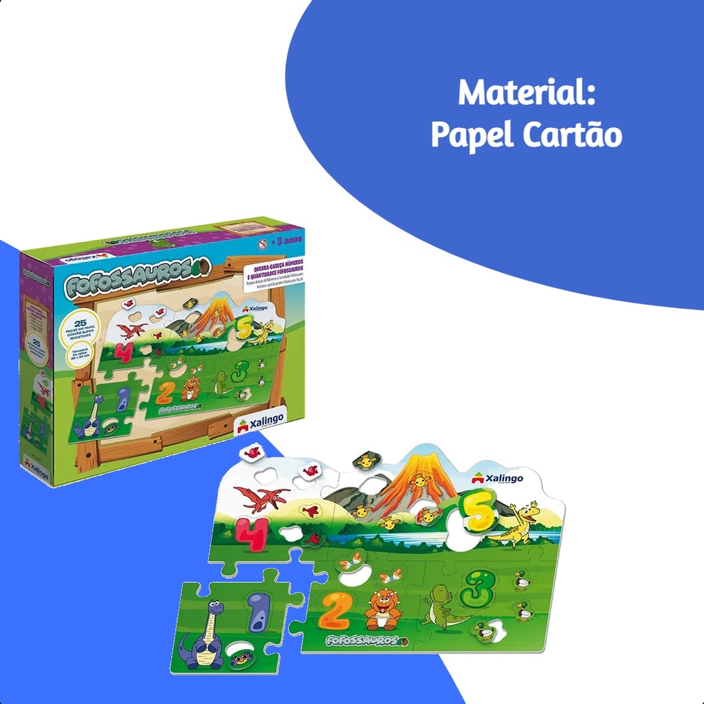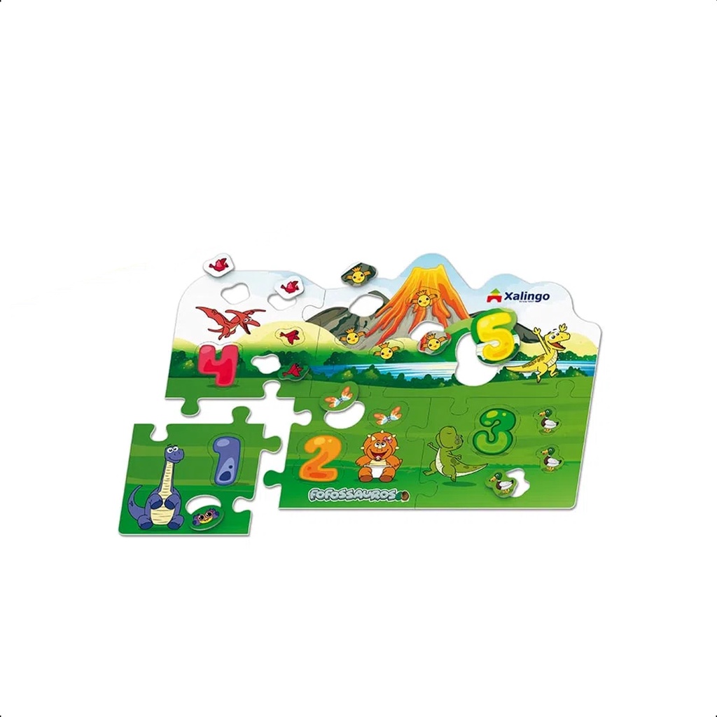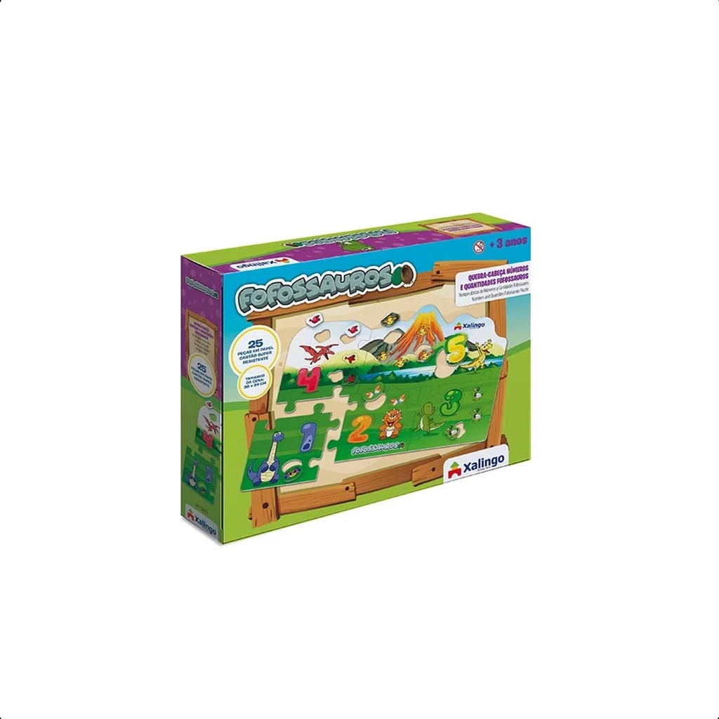 Quebra-cabeça Cartão Números e Quantidades Fofossauros 36x24 cm Papel Cartão 25 Peças +4 anos Xalingo - 54498