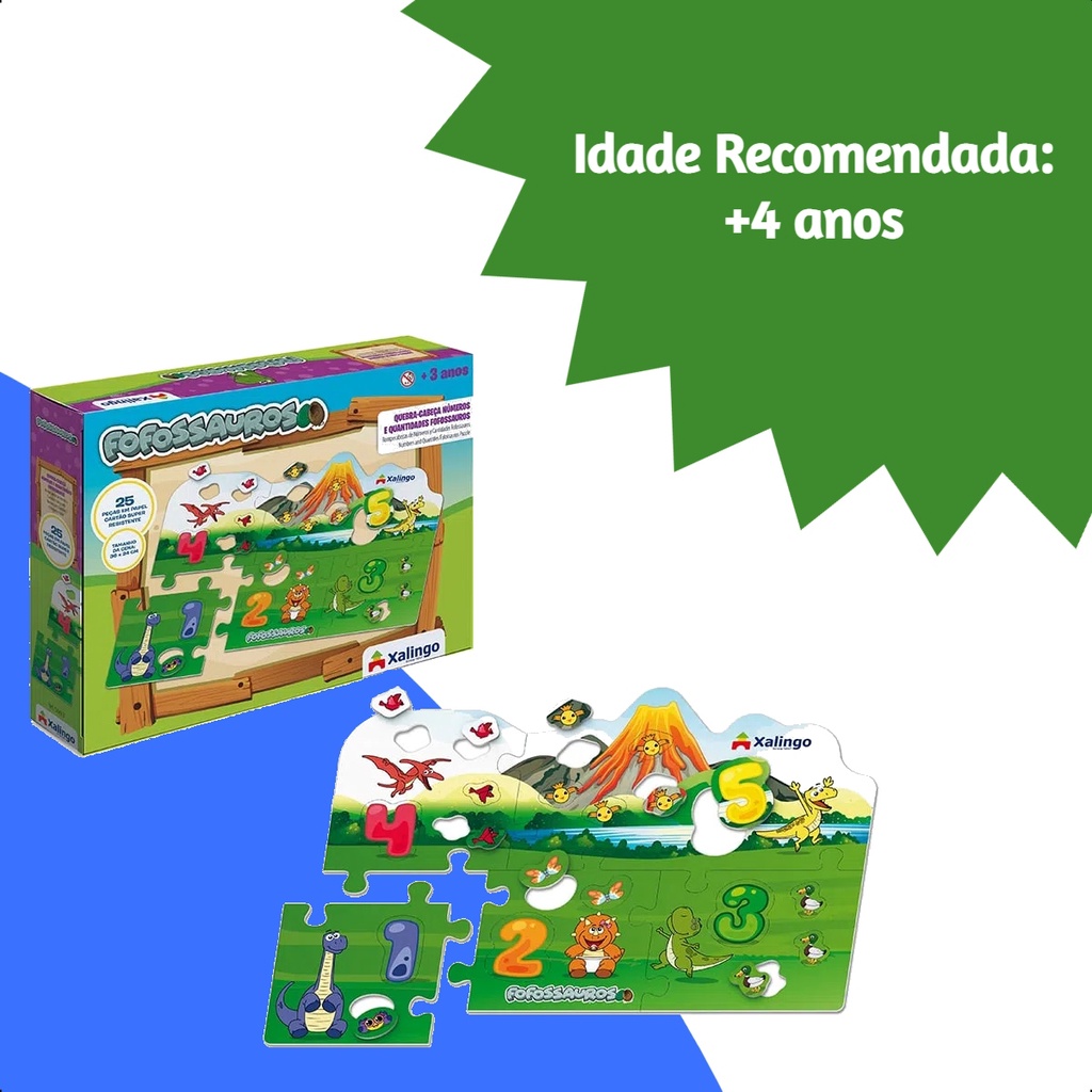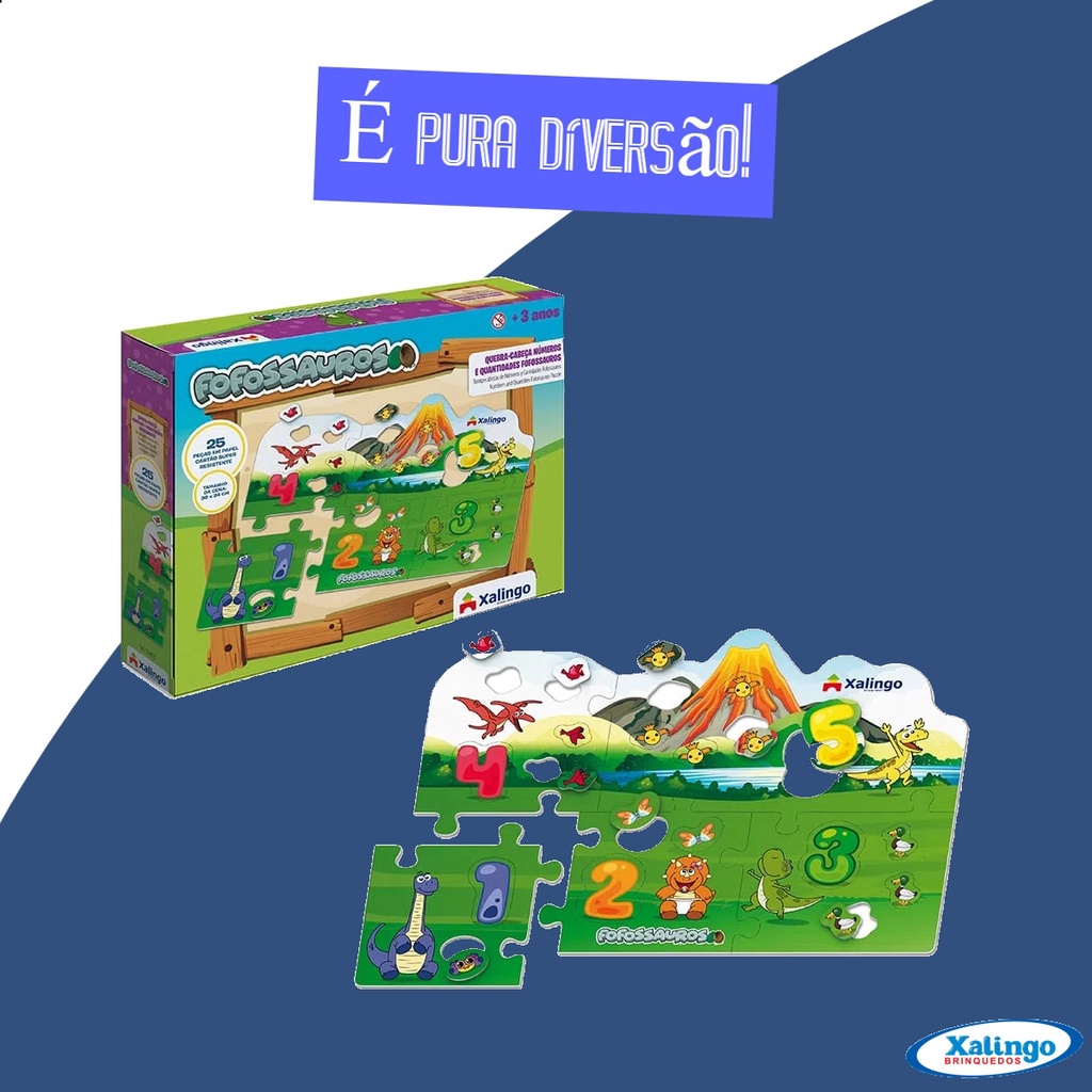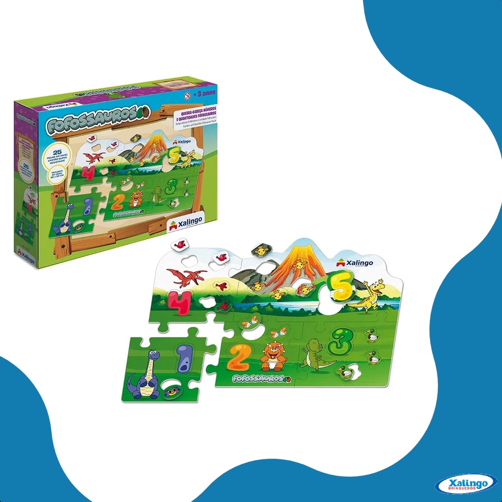 Quebra-cabeça Cartão Números e Quantidades Fofossauros 36x24 cm Papel Cartão 25 Peças +4 anos Xalingo - 54498