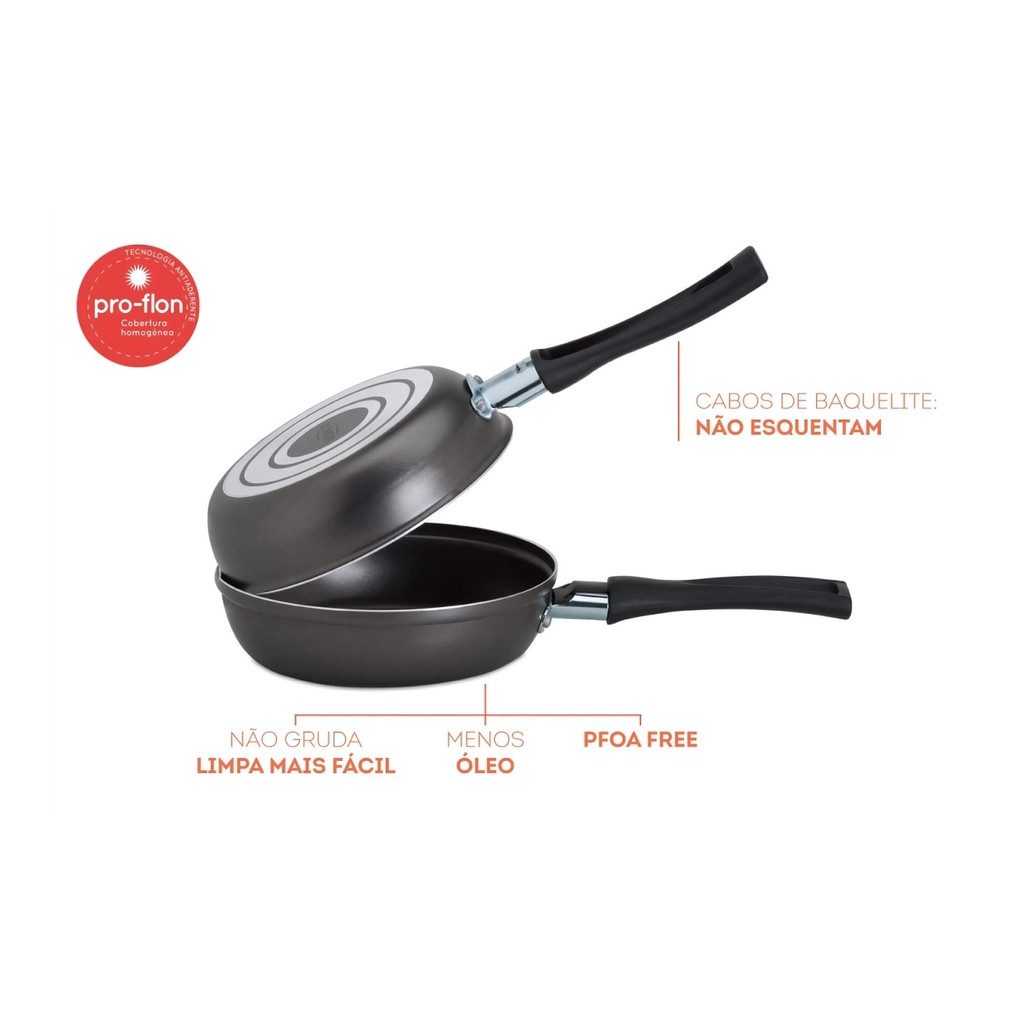 Omeleteira Antiaderente Pro-Flon 18cm 0,7L Linha Garlic Preta Brinox - 7190/471