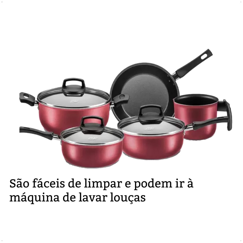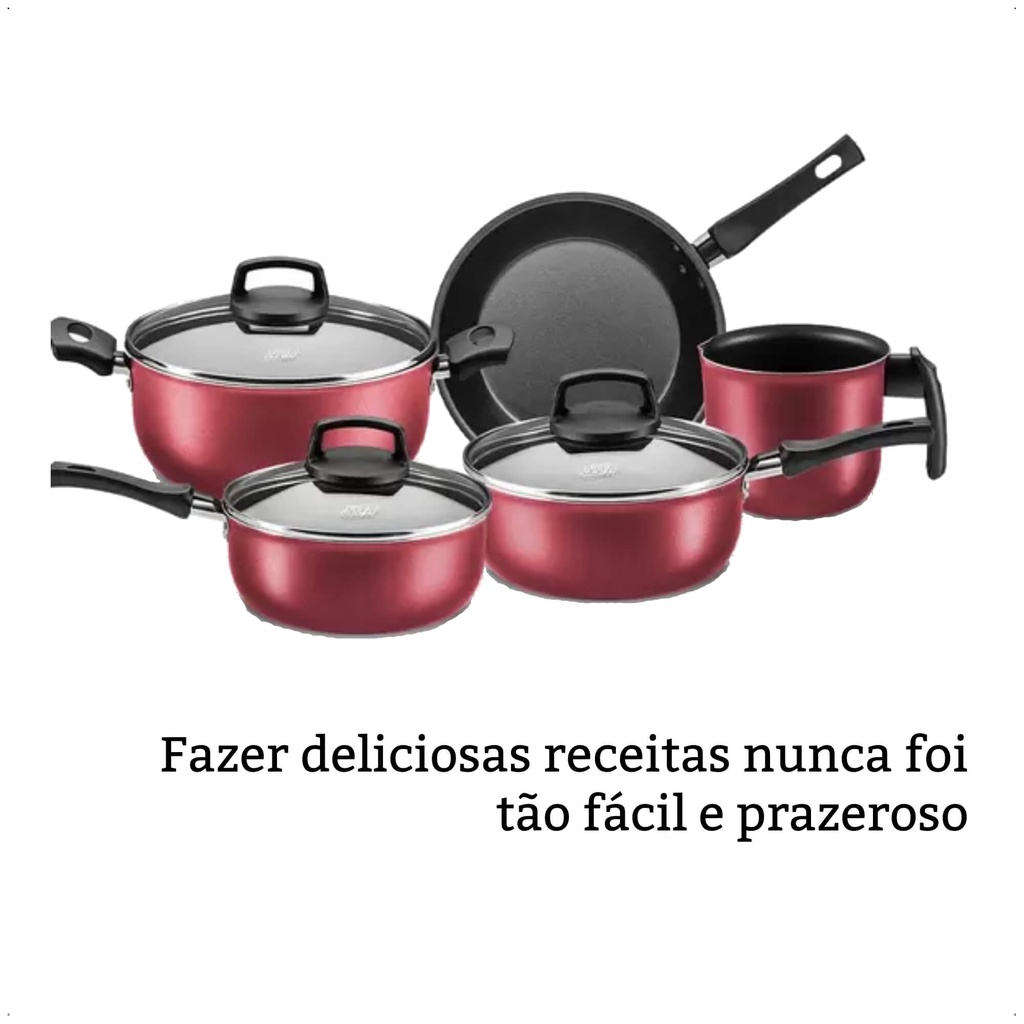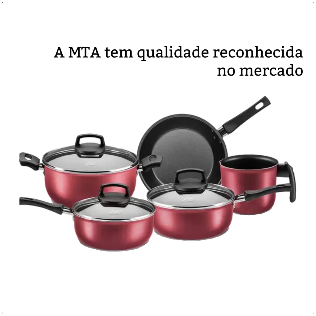 Jogo de Panelas Antiaderente Baque Antitérmico Safira Cereja 5 Peças MTA - 5661