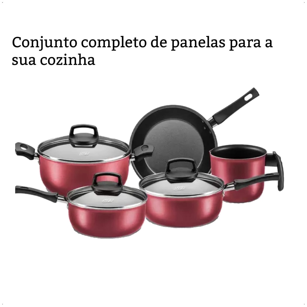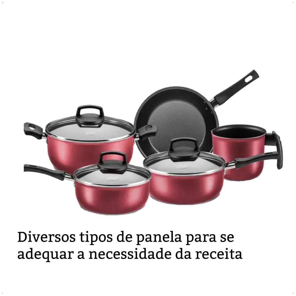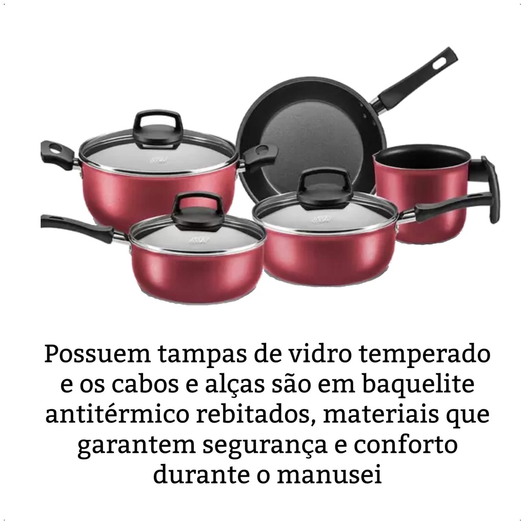 Jogo de Panelas Antiaderente Baque Antitérmico Safira Cereja 5 Peças MTA - 5661