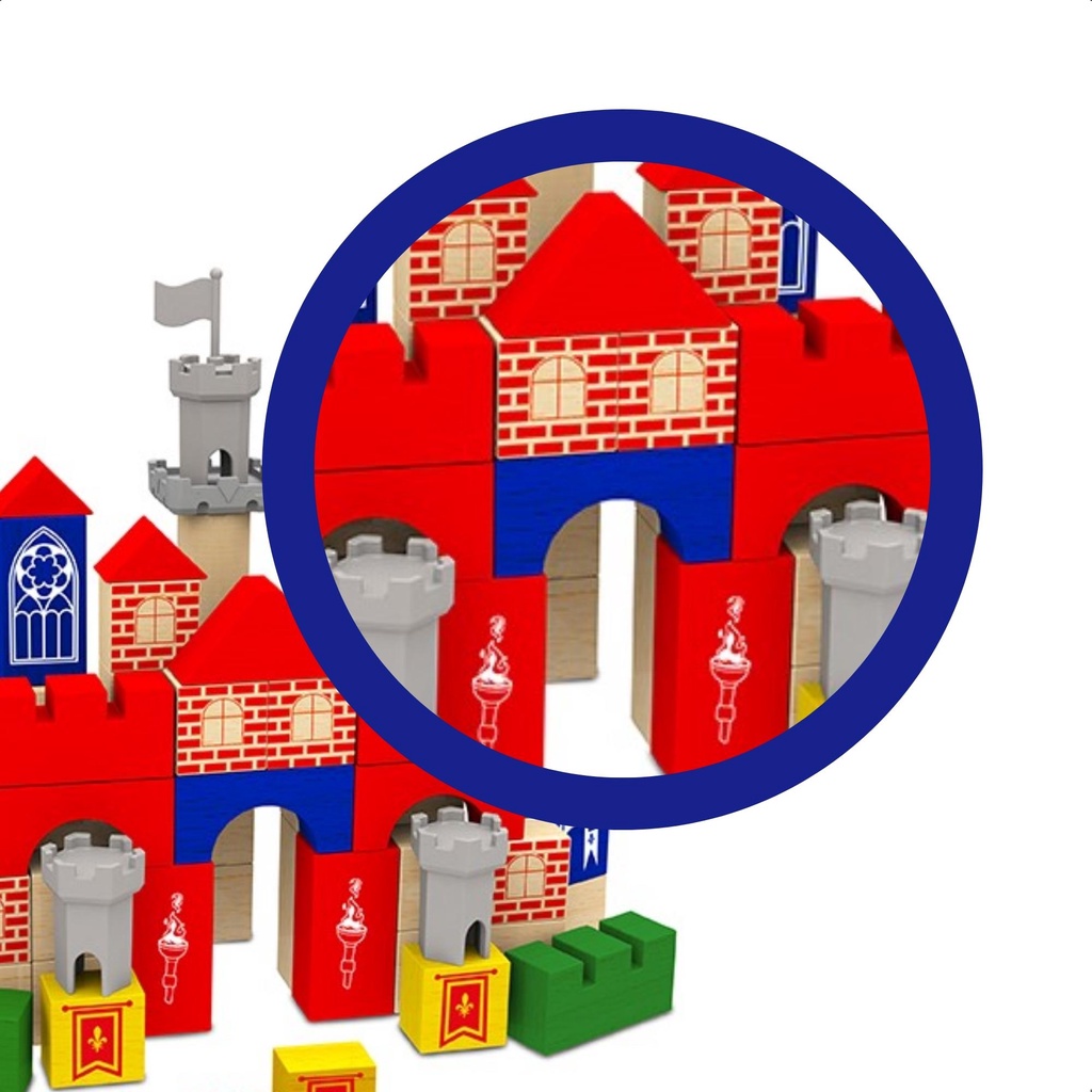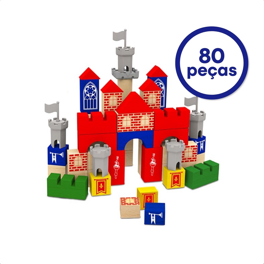 Brinquedo de Montar Brincando de Engenheiro Castelo Medieval 80 Peças Madeira Reflorestada Criatividade - 54621 Xalingo