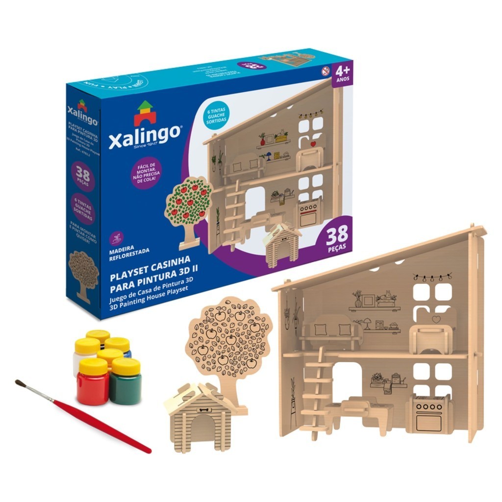 Brinquedo Playset Casinha 3D Colorir Pintura 6 Tintas Guaches Aleatórias - 38 peças Xalingo 67832