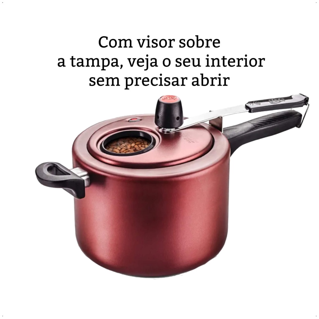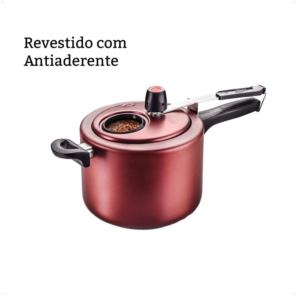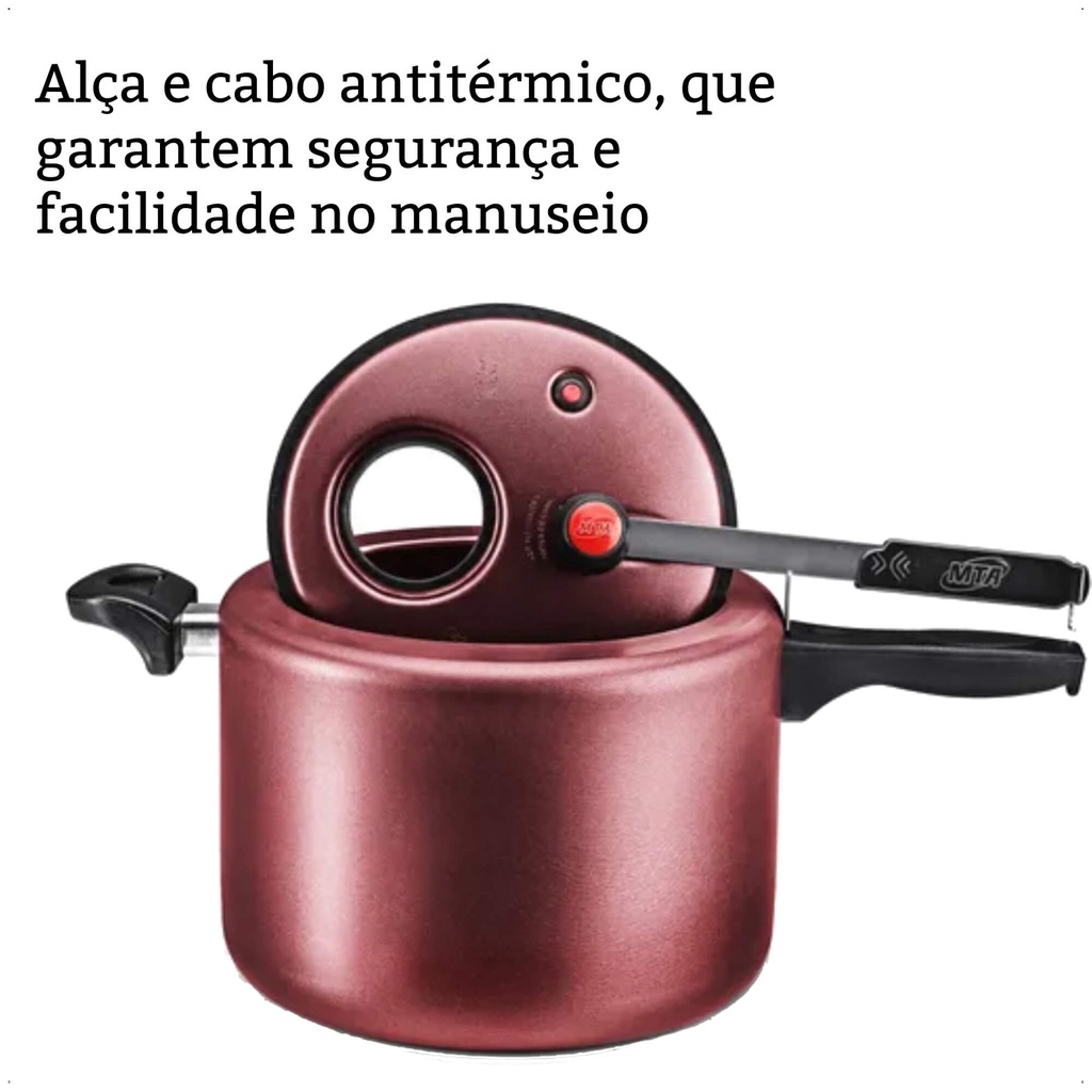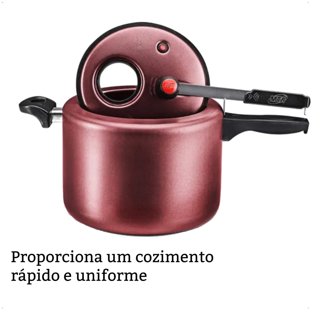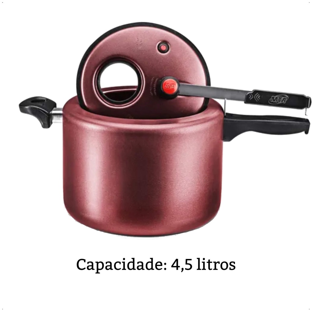 Panela De Pressão 4,5L Antiaderente Cereja Com Visor na Tampa MTA - 6023