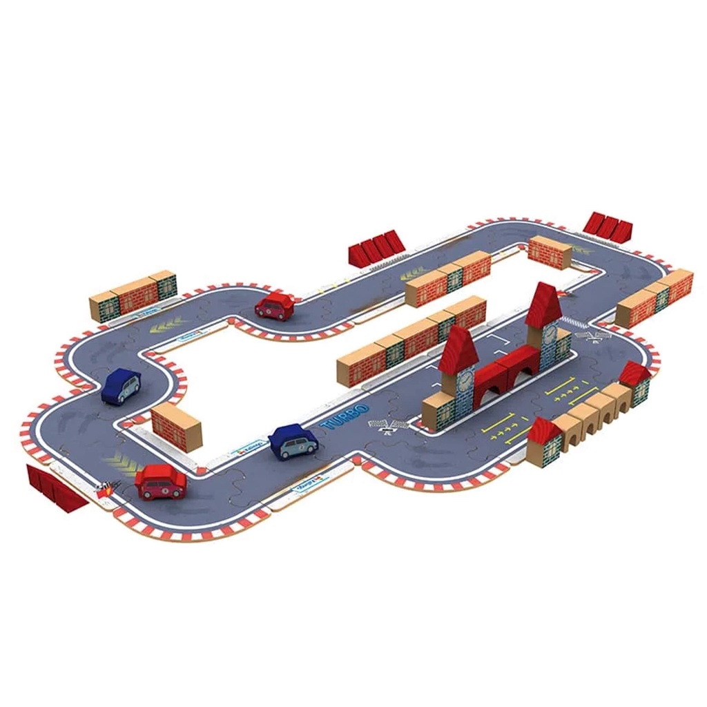 Brinquedo de Construir e Montar Brincando de Engenheiro Circuito de Corrida 70 Peças de em Madeira - Xalingo 52773