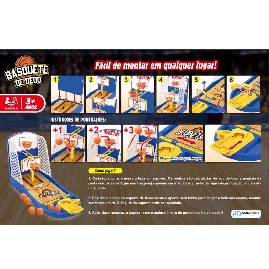 Brinquedo Jogo Basquete de Dedo Basketball Tournament Com 6 Bolinhas Multikids - BR1476