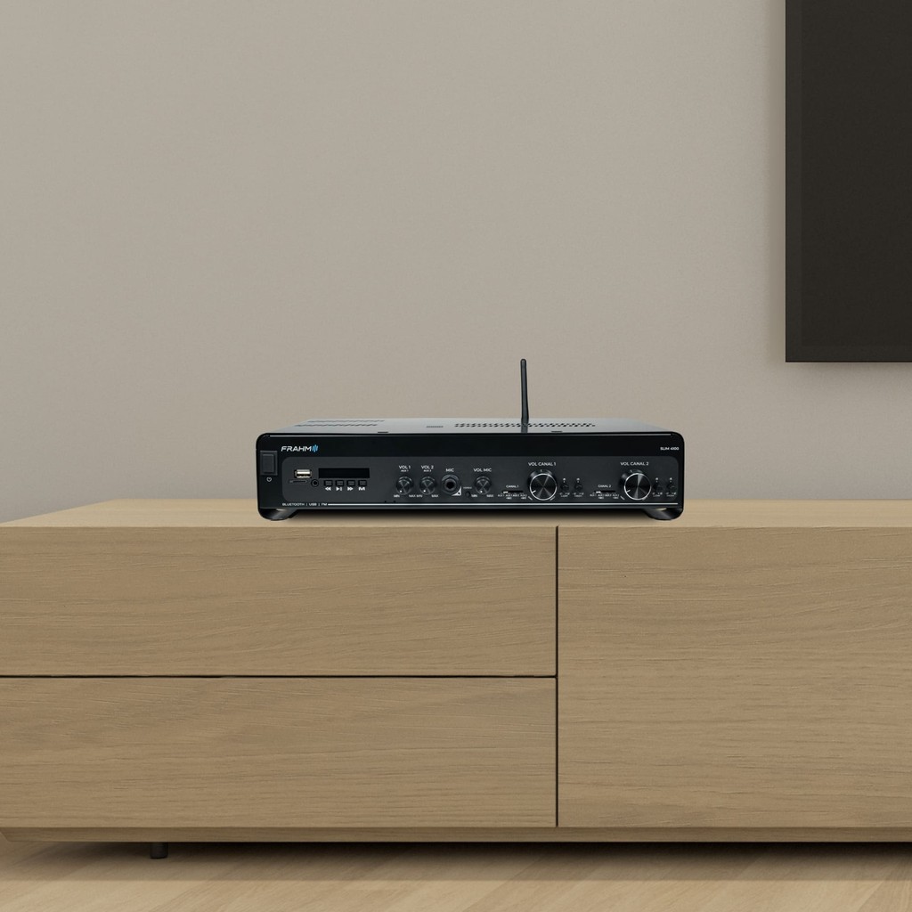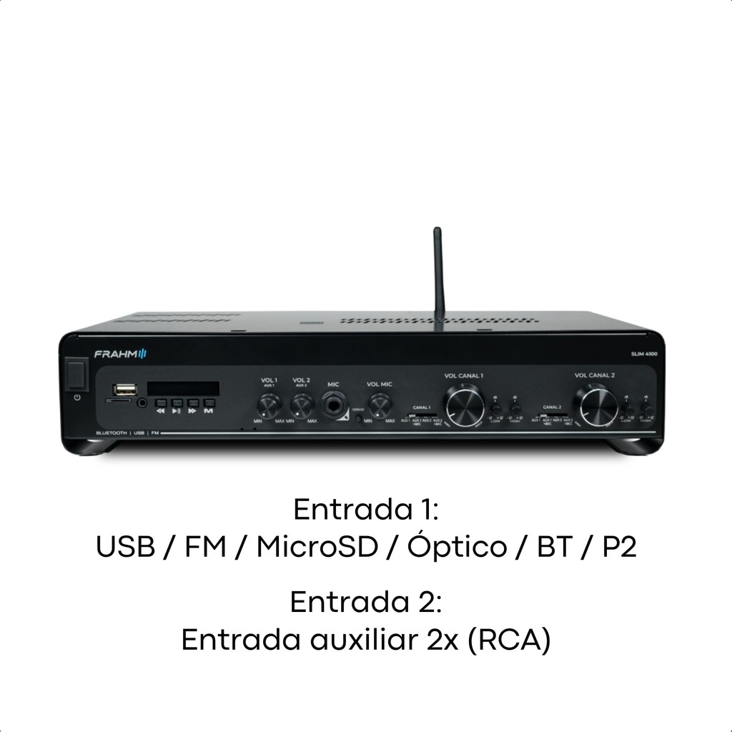 Kit Som Ambiente Amplificador Slim 4100 G5 300W RMS (2x150W) + 8 Arandelas CX6 8 Ohms 40 RMS - FRAHM