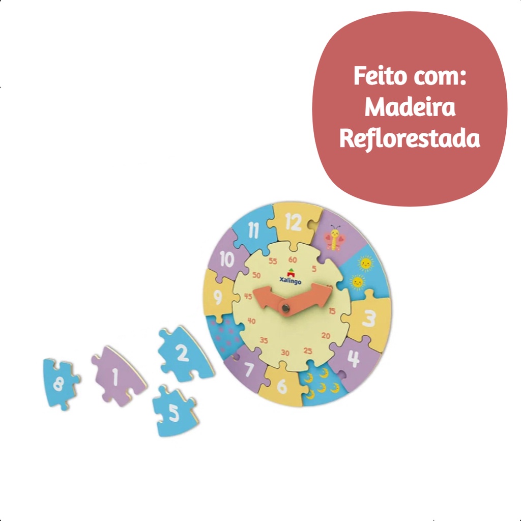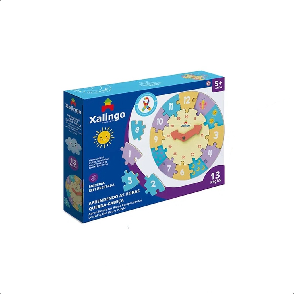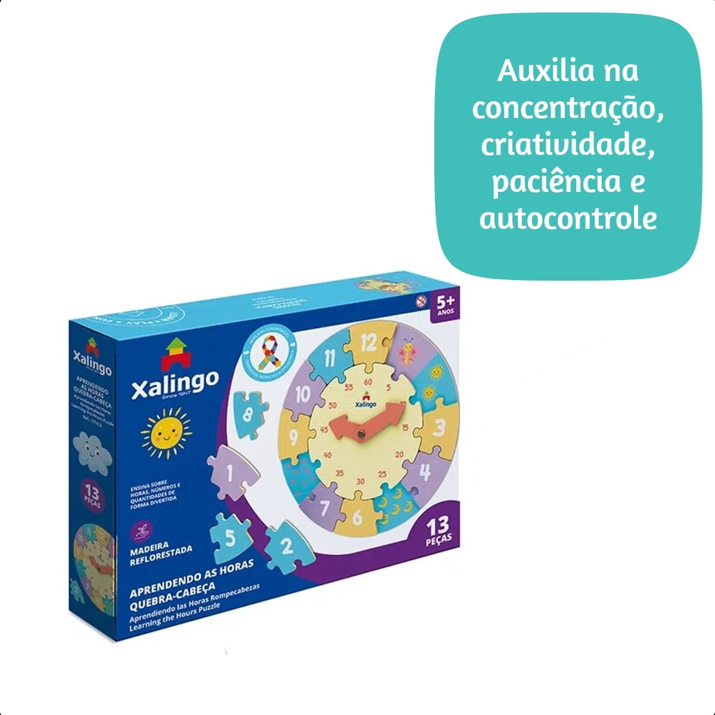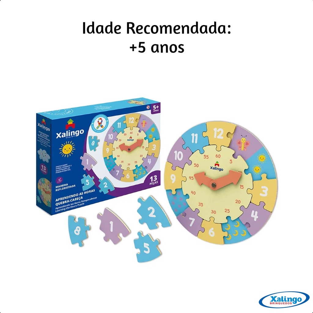 Quebra-Cabeça Relógio Aprendendo as Horas com 13 Peças a Partir de 5 anos TDAH Xalingo - 17165