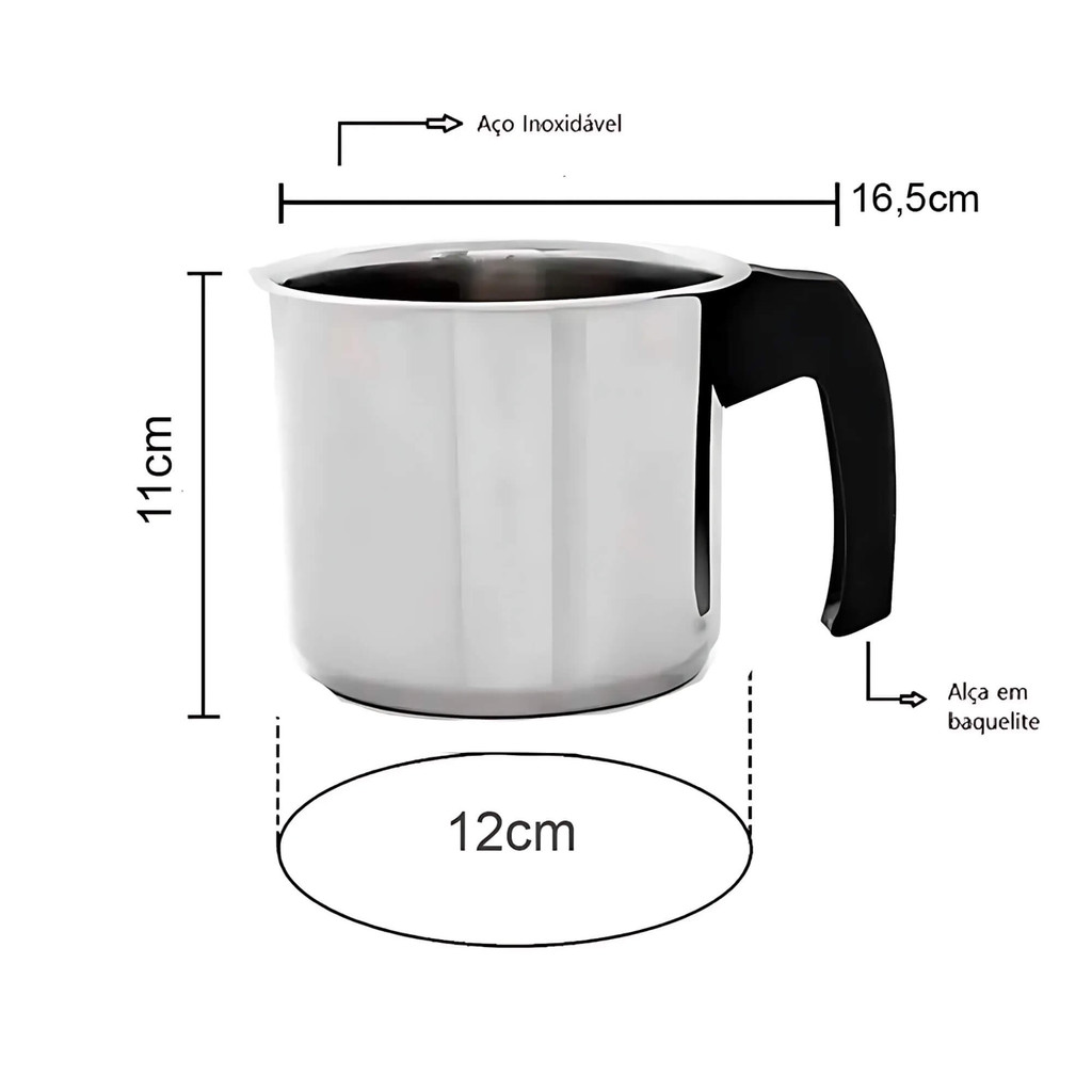 Fervedor Leiteira 12cm Suprema em Aço Inox 1,25 Litros Brinox - 2092/120