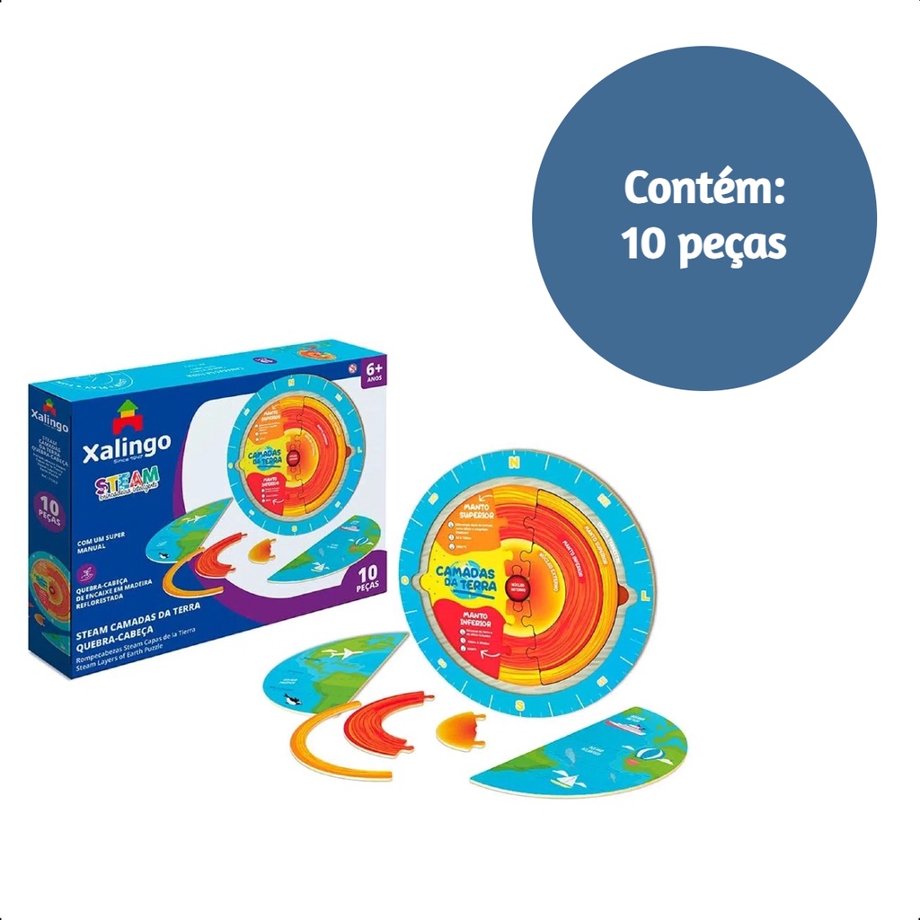Steam Quebra-cabeça Camadas da Terra de Madeira Reflorestada 10 Peças +6 anos Xalingo - 17243