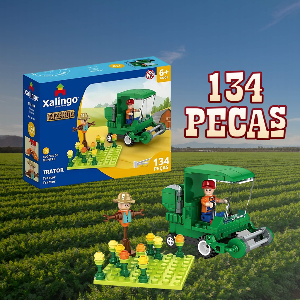 Brinquedo Infantil Bloco de Montar Fazenda Trator 134 Peças Xalingo - 68143