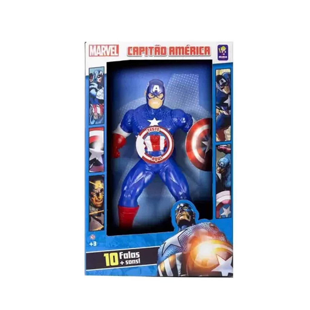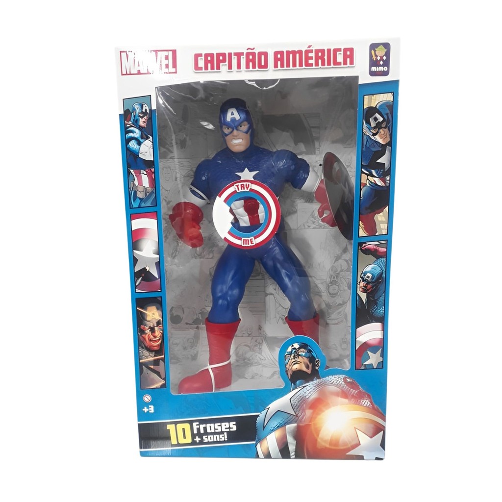 Boneco Capitão América Marvel 10 Falas 50cm Super Herói Vingadores Action Figure Mimo Toys - 0582
