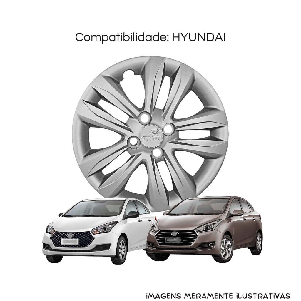 Calota Aro 14" Prata Hyundai HB20 HATCH / SEDAN 2016/18 (Jogo c/ 4 Calotas) Grid - 191CB-PTA-E