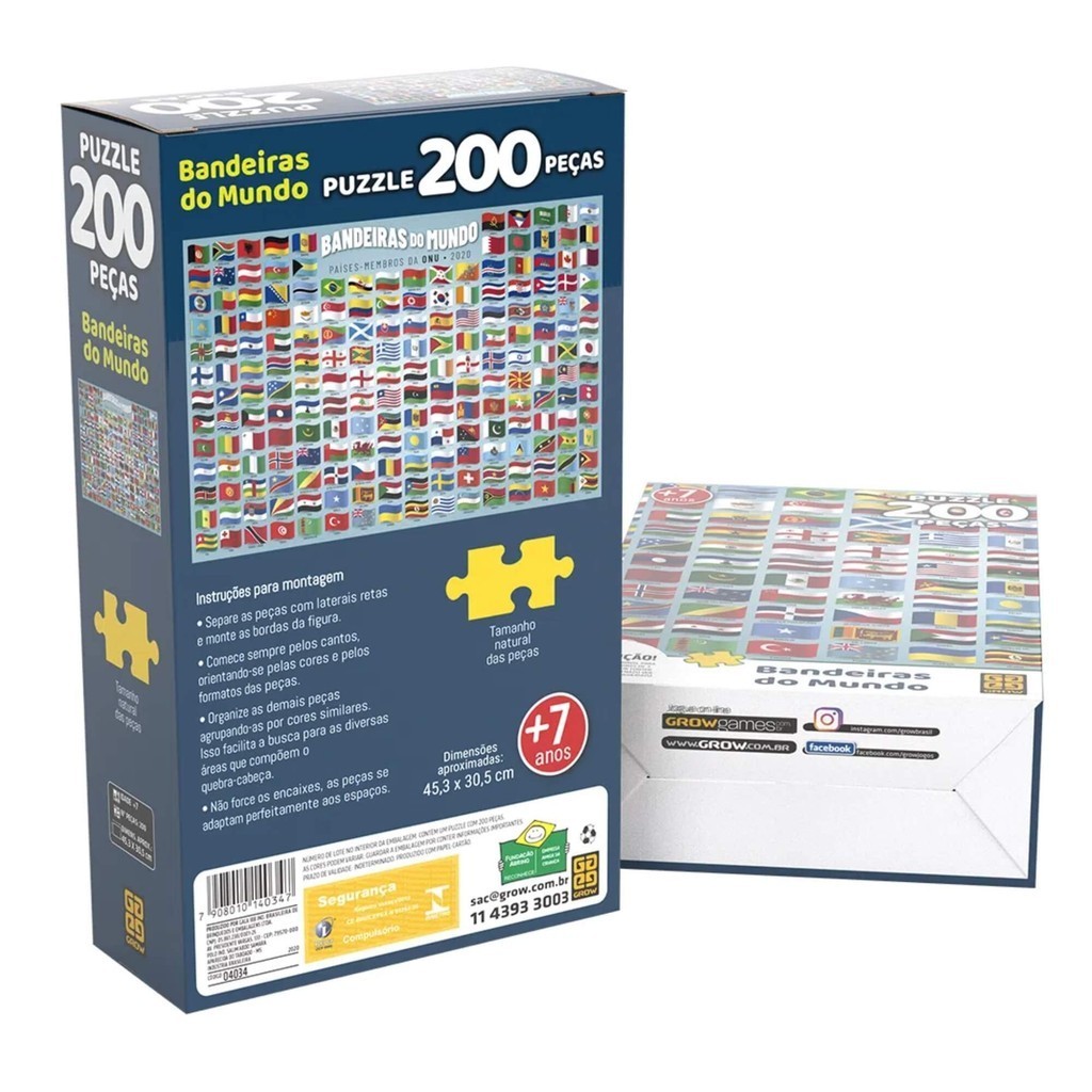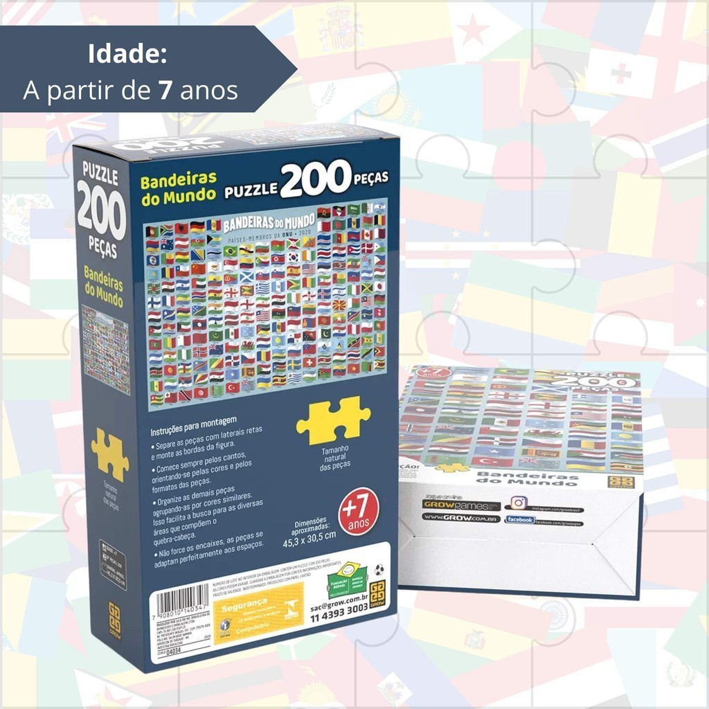 Brinquedo Infantil Quebra-Cabeça Puzzle Bandeiras do Mundo 200 Peças Grow - 04034