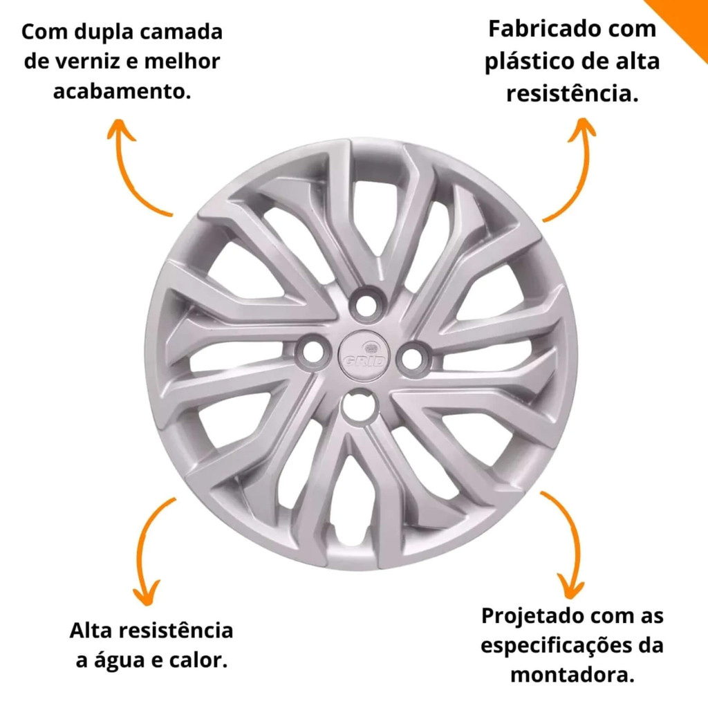 Calota Aro 15" cor Prata Mod Argo/Cronos 2022 (Jogo c/ 4 Calotas) Grid - 296CP-PTA-E