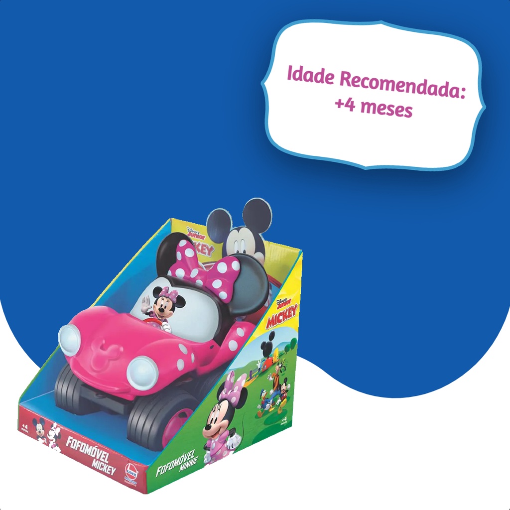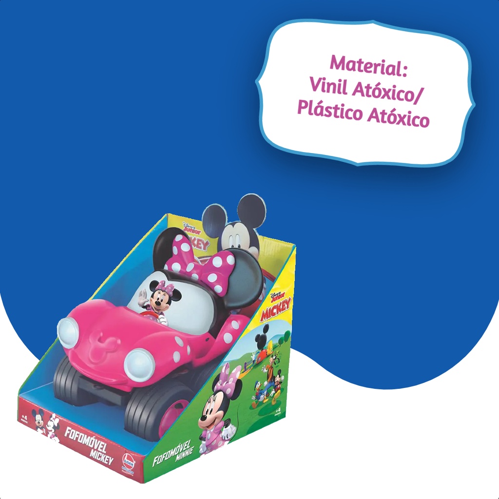 Brinquedo Carro Fofomóvel Minnie Rosa em Vinil Fácil de Lavar +4 meses Menina Líder Diversão Lazer - 2882