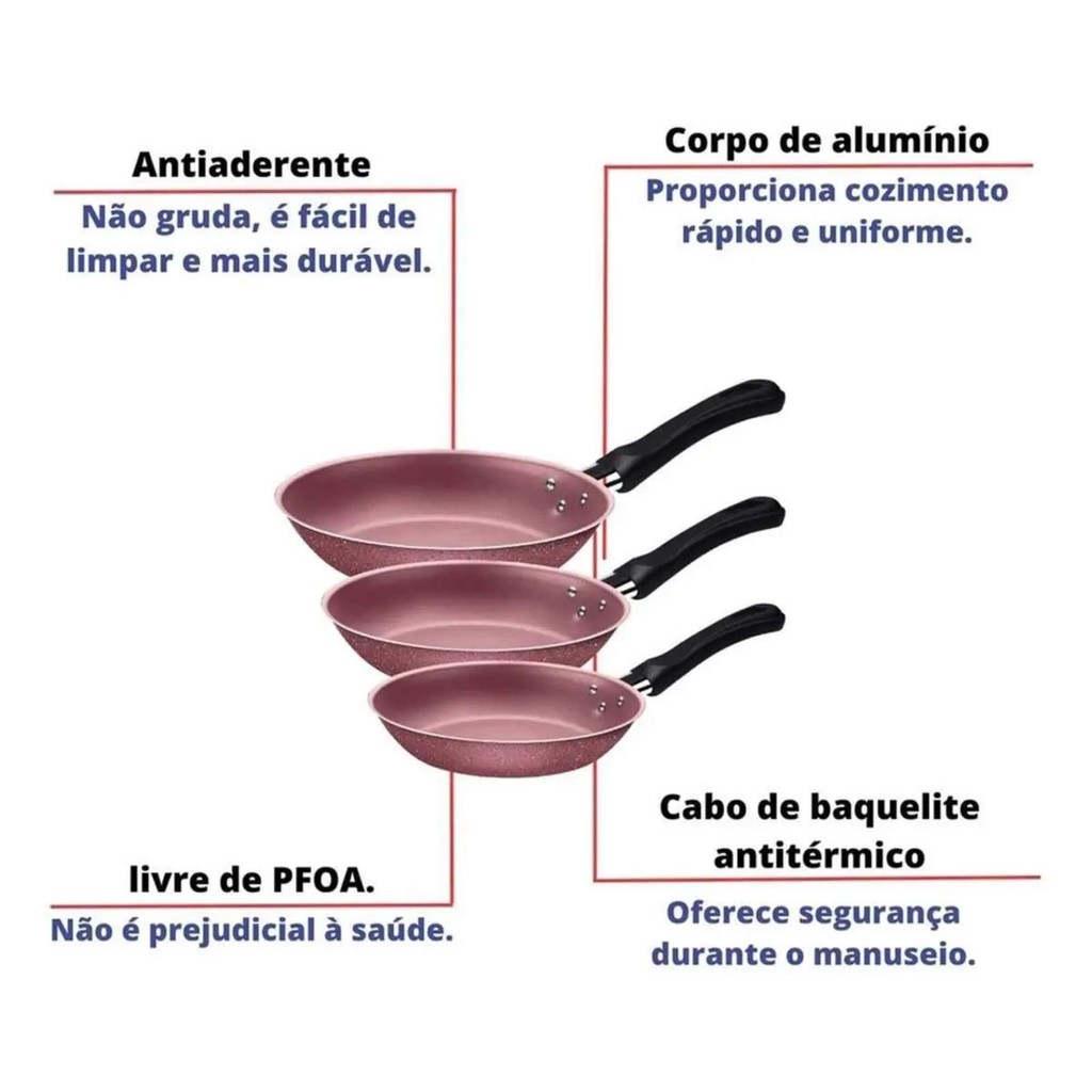 Jogo de Frigideiras Linz Antiaderente Starflon Max Rosa 03 Peças Tramontina - 20297409