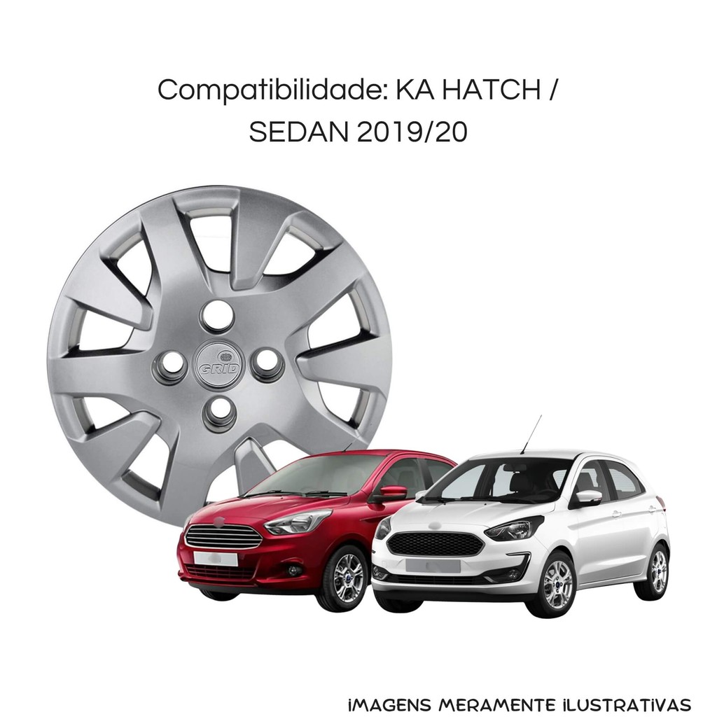 Calota 14" Prata Mod Ford Ka Hatch / Sedan 2019 / 2020 (Jogo c/ 4 Calotas) Grid - 343CB-PTA-E