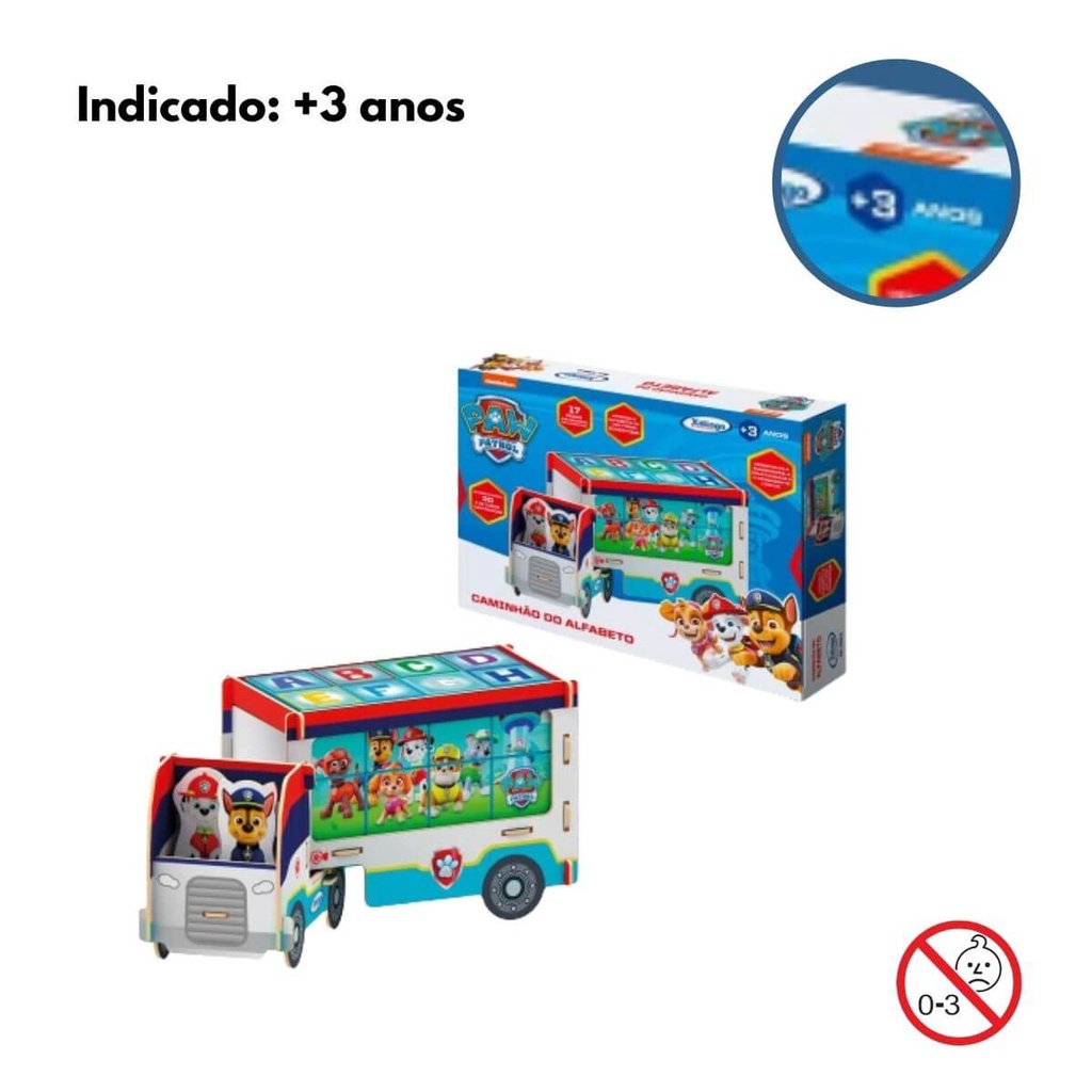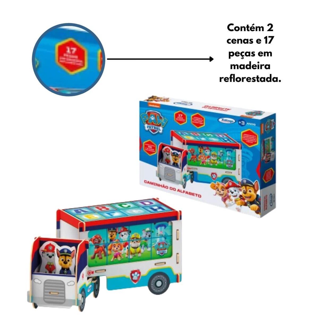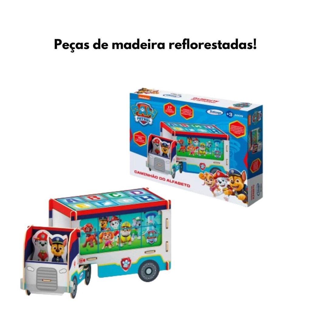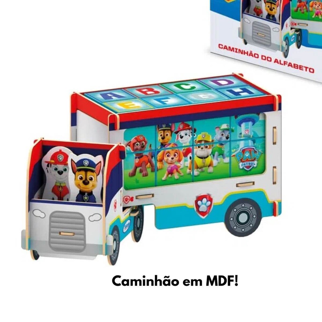 Brinquedo de Montar Caminhão Abc Patrulha Canina MDF 3D Criativo Com 2 Cenas e 17 Peças Xalingo 13910