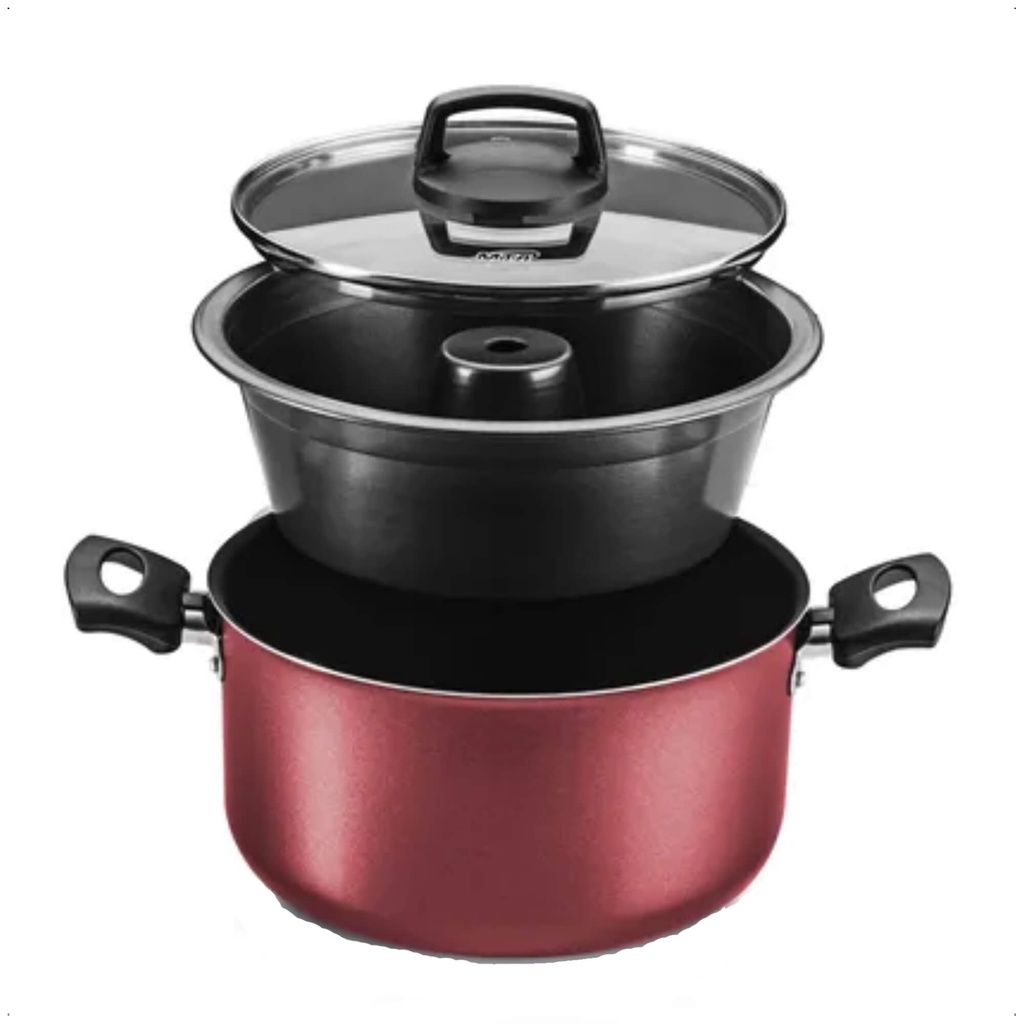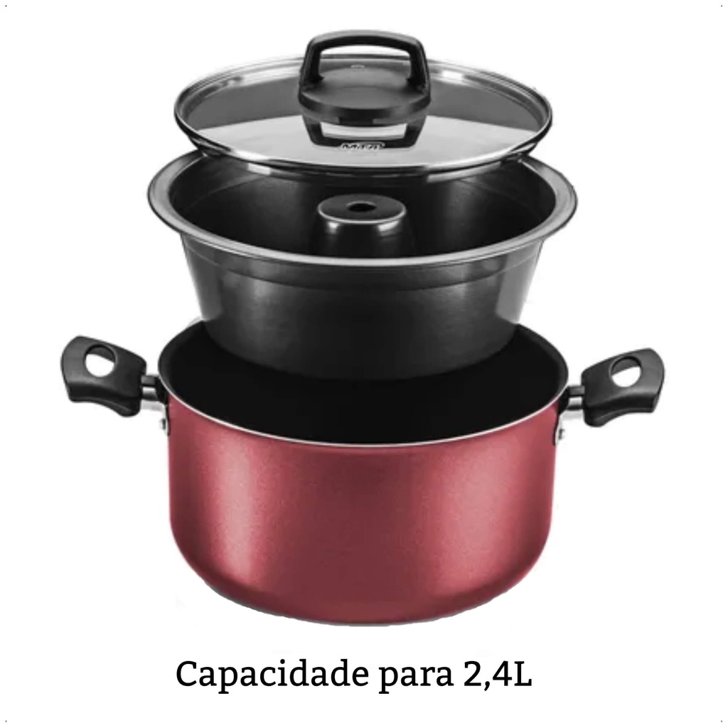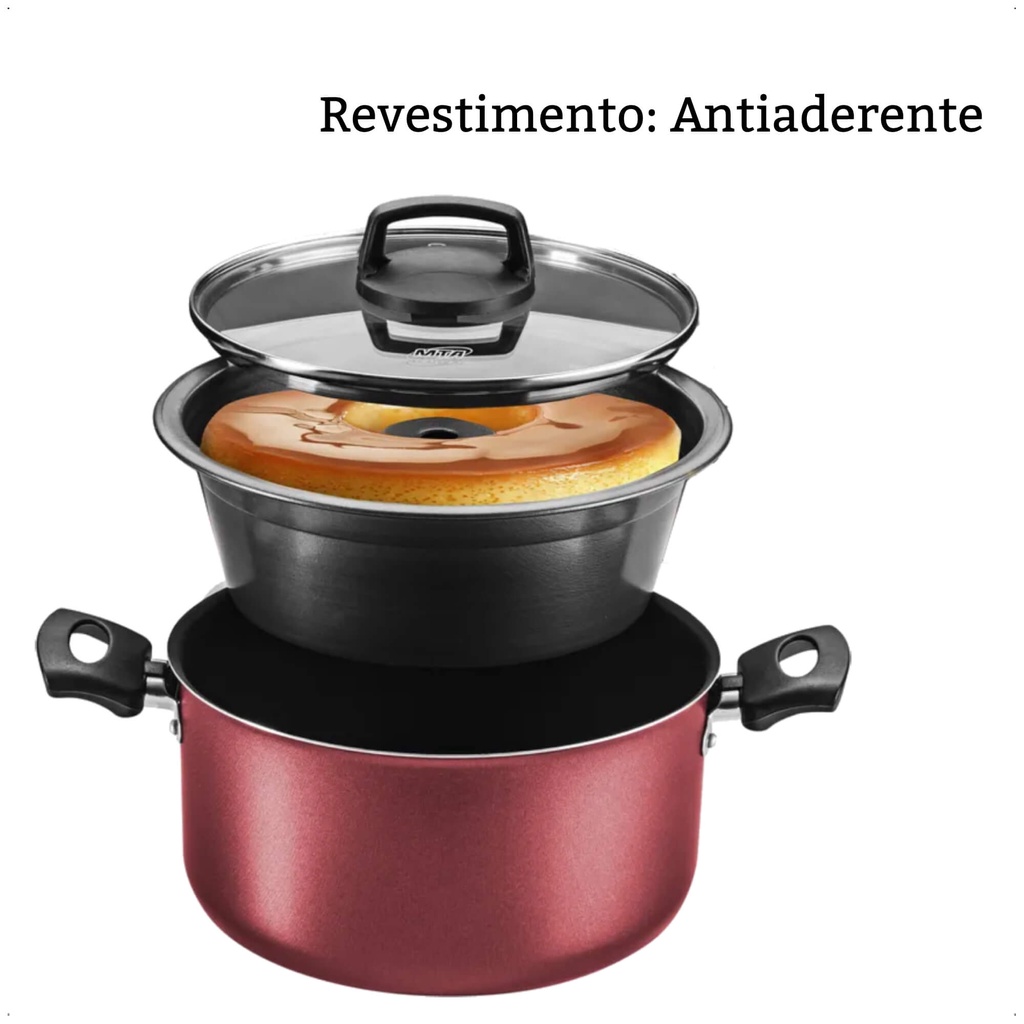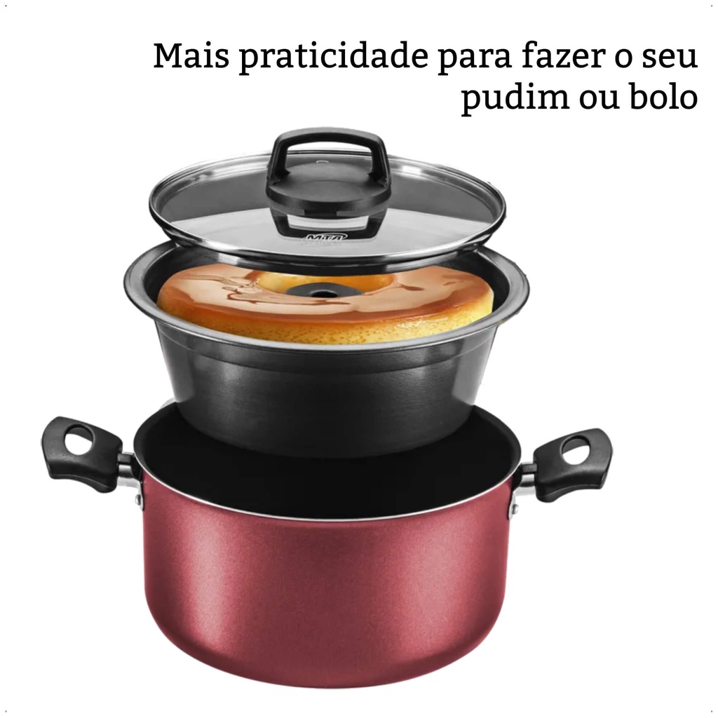 Panela Forma Pudim Banho Maria Antiaderente Tampa Vidro Mta