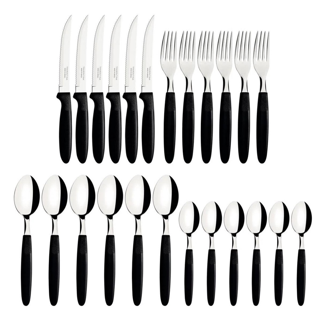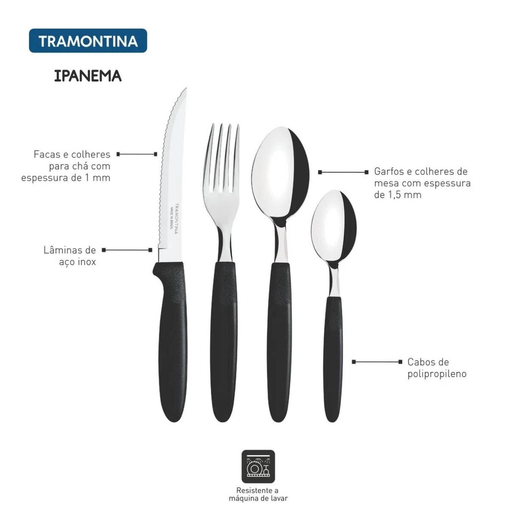 Faqueiro Tramontina Ipanema Lâminas Aço Inox e Cabos de Polipropileno Preto Pote 24 Peças 23399091