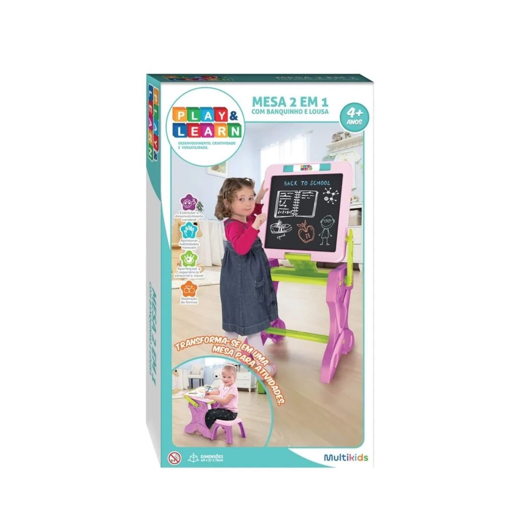Mesa de Atividades Infantil Banquinho Play e Learn 2 em 1 Multikids BR1766