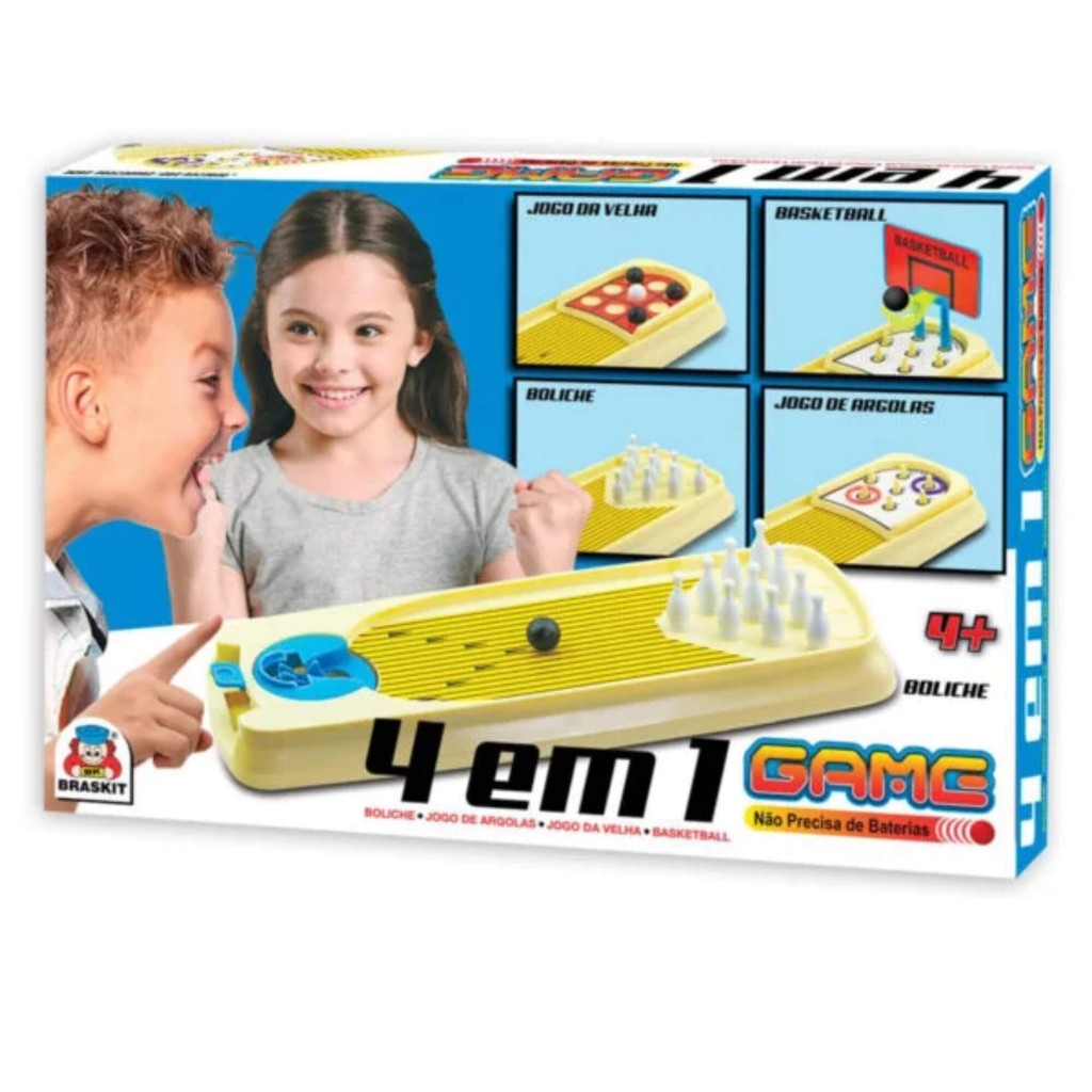 Brinquedo Infantil 4 em 1 Game Mesa de Jogos Argola Basquete Boliche Braskit - 210A