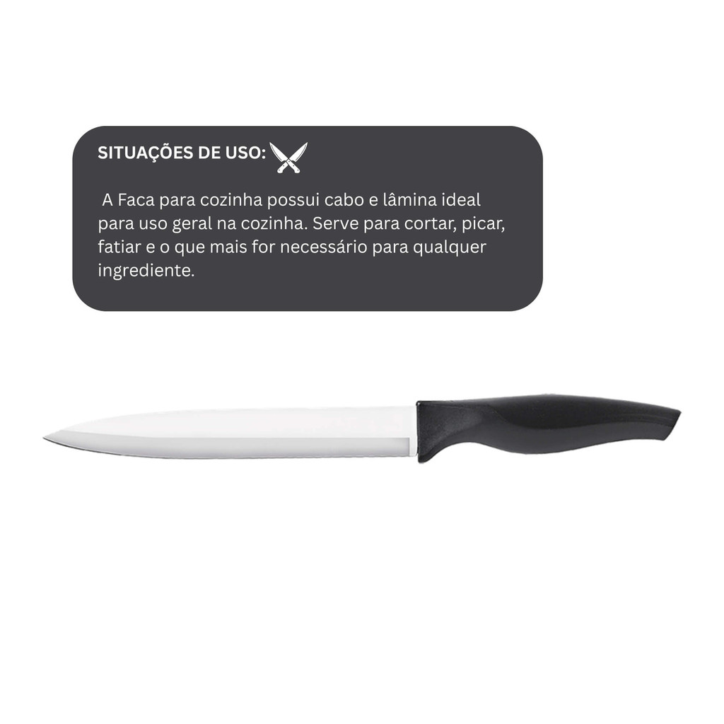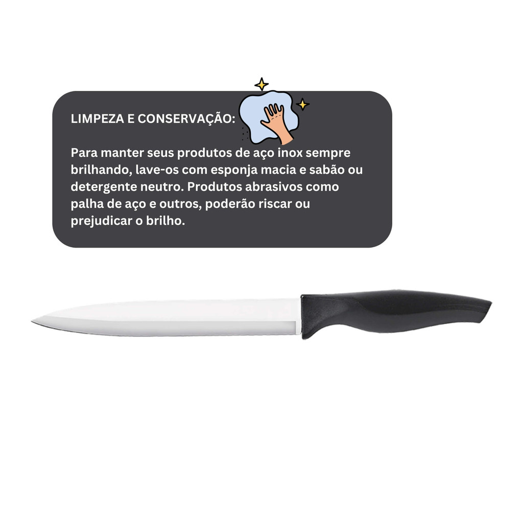 Faca Cozinha 7" lâmina de aço inoxidável polido e temperado cabo preto Brinox - 2556/303