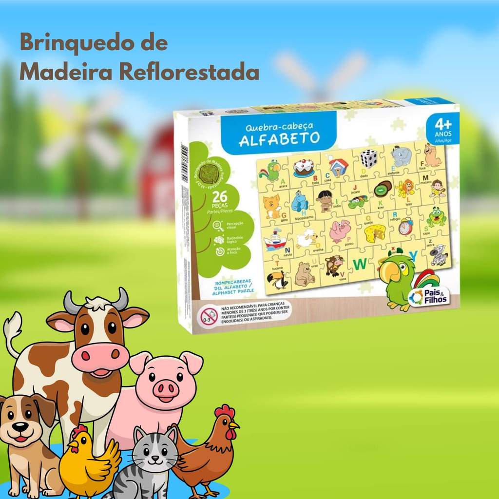 Quebra-Cabeça Alfabeto Em Madeira 26 Peças Pais e Filhos - 7322-1