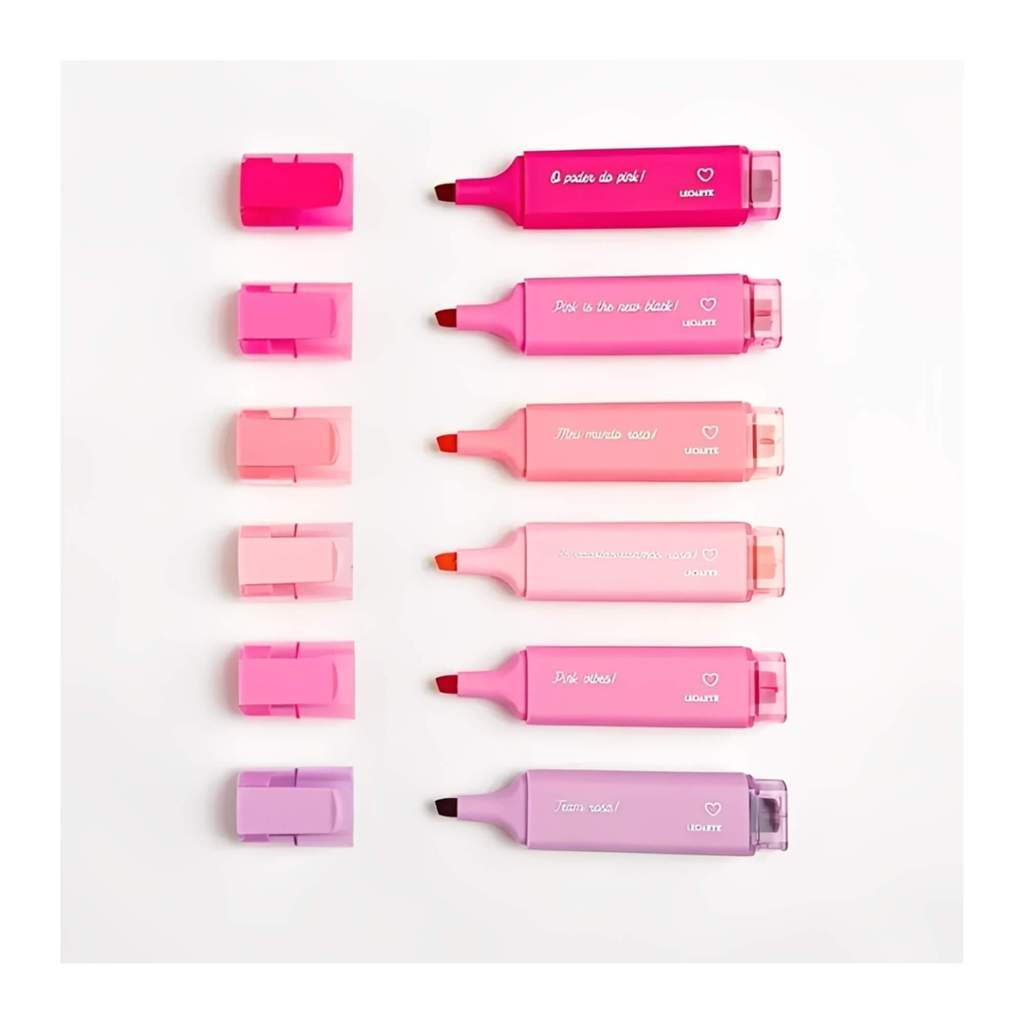 Estojo com 6 Cores de Marca Texto Pink Vibes Leoarte Leonora - 96154