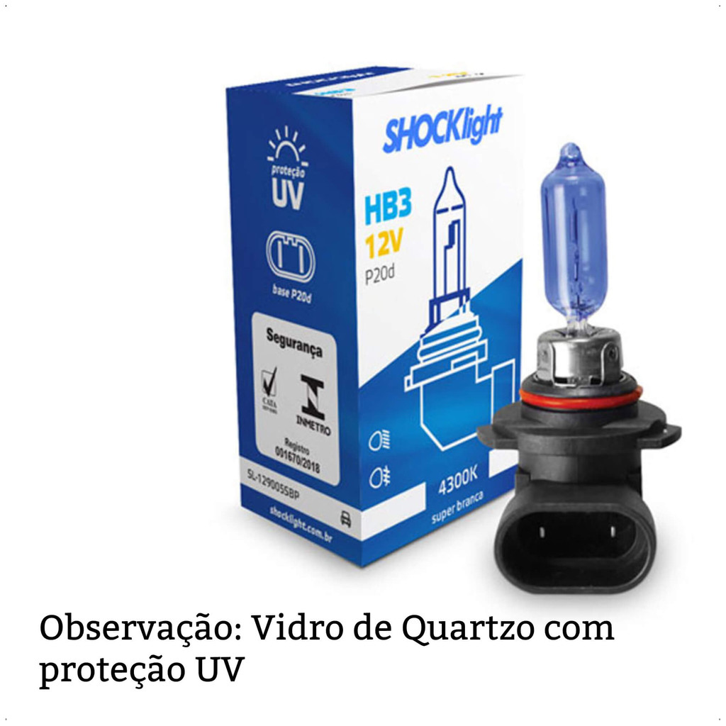 Lâmpada Halógena Super Branca HB3 4300K 12V 60W P20D 1650 Lumens Shocklight - SL-129005SBP