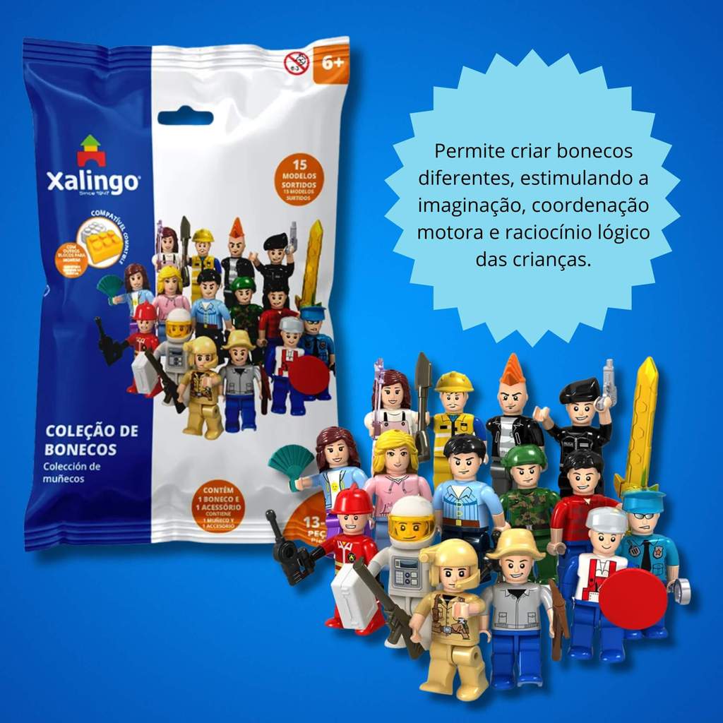 Brinquedo Blocos de Montar Criativo Bonecos 13/15 Peças - Sortido e Unitário Xalingo - 15232